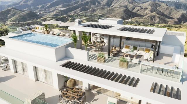 New Penthouse duplex for sale in East side of Marbella with Panoramic Views. Set in a bespoke development of 44 private sea view residences, immersed in authentic Andalusia, bordering a protected nature area and conceived by a world class team. Designed so that all properties benefit from dramatic views of the sea and beyond to Gibraltar and Africa. Bordering a protected nature area of 230 hectares, just 44 private residences are available within this gated community, providing two and three bedroom apartments, including 10 penthouses, each of which have their own private pool on the rooftop solarium terrace. To ensure that time in residence is as enjoyable and hassle free as possible, a comprehensive concierge service is available as well as full and highly personalised property and rental management services. For peace of mind, our elegant signature entrance to the complex is manned 24/7 with a security guard, video surveillance and a fully fenced perimeter. Below ground there is underground parking for every home and spacious private storage facilities.