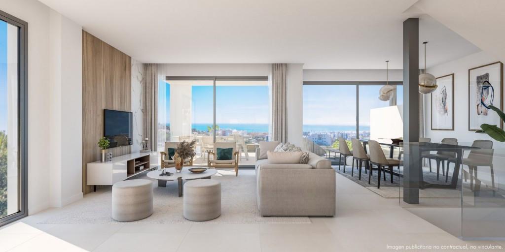 2 bed, 2 bath apartments from 695.000 euros 3 bed, 2 bath penthouses from 1.125.000 euros Prices excl. 10% VAT / Ready end 2025 Can you imagine living in a residential complex that offers you all the services you need to enjoy the life you always dreamed of? Higuerón you will find more than just a home. It is a new development located in the heart of the Costa del Sol of townhouses, flats and apartments of 2, 3 and 4 bedrooms of contemporary design, with total privacy and a privileged orientation. The houses on the ground floor will also have private gardens and those on the top floor will be duplexes, enjoying a solarium on the roof. This privileged complex offers you wonderful common garden areas, outdoor pool and play area for the little ones. Located in a strategic enclave, this development is located in the heart of the Costa del Sol. A booming area of high recognized value, where the exclusivity and lifestyle of the Mediterranean blend masterfully, creating a unique concept of life. Just a few minutes away you will be at Carvajal Beach, located between Fuengirola and Benalmádena. An ideal place to enjoy your lifestyle. Our goal is to create a high quality, innovative and sustainable set, where people live, work and enjoy their leisure time in community, with a wide variety of spaces where they can meet. We are committed to quality, innovation and variety so you can choose the type of home that best suits your lifestyle. We offer you all the exclusivity of the Costa del Sol but without giving up the tranquility offered by a residential surrounded by well-kept green areas, wonderful views of the Mediterranean and all the services you always wanted.