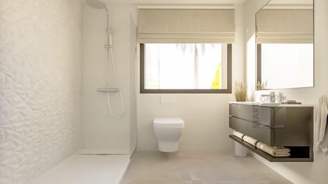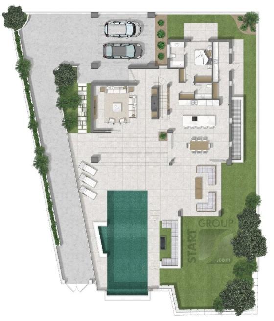 Spanish Living Group are proud to present this boutique development of 10 modern design villas, set in the privileged area of El Chaparral in Mijas Costa. El Chaparral is an exclusive urbanization of luxury villas situated in between Fuengirola and Marbella and only 20 minutes drive from Malaga airport. The excellent El Chaparral golf course is located only a few hundred meters from the villas. This 18-hole golf course is surrounded by an impressive natural pine forest. This is one of the few places in the world where you find this special variety of pine trees which forms a spectacular scenery with the golf course nestled in between and with views of the sea and the mountains. The picturesque village of La Cala de Mijas is only minutes away by car or a mere 20 minute walk along the beach. In La Cala de Mijas you can find an abundance of nice restaurants, shops, supermarkets and some great wine bars. This area has become increasingly popular in recent years thanks to the fact that the original village has maintained its Andalusian charm while new modern apartments, townhouses and villas have been built in the newer area behind the village, yet less than a kilometer from the beach. The villas all benefit from large open spaces. When entering the property, you find yourself in a grand hall with double height ceilings, leading into a bright and spacious living-room with a fireplace and vaulted ceiling. Adjacent to the living-room, you enter a separate dining area that opens to an amazing state-of-the-art kitchen featuring an impressive cooking island. The ground floor enjoys direct access to a lush Mediterranean garden with a large private swimming pool. The main outdoor terrace is partly open and partly covered with a lovely designed pergola, so you can choose between sun or shade. On the ground floor we can also find a large bedroom with en-suite bathroom as well as a separate guest bathroom and a big utility room. You reach the top floor via a beautifully designed staircase which is an iconic architectural feature in itself. The master suite accommodates a spacious bedroom with views and a private south facing terrace as well as walk-in wardrobe and, of course, a luxury en-suite bathroom. On the top level of the villa there are two more bedrooms with built-in wardrobes and a bathroom. Each property has a private gated entrance leading up to a large covered carport with space for two cars. The properties are fenced off for privacy as well as security. The exterior retaining walls are built with "Casares stones" which are huge decorative boulders that give the properties an aspect of utmost luxury - even from the outside. The buyer has the possibility to buy the villa with an optional basement. This area can include a garage for two to three cars, a guest bedroom, bathroom, storage area as well as a room that could be made into a gym, games room or even a home cinema! Villas with 4 bedrooms, 3 bathrooms, from 1420.000 euros (excl. 10% VAT)