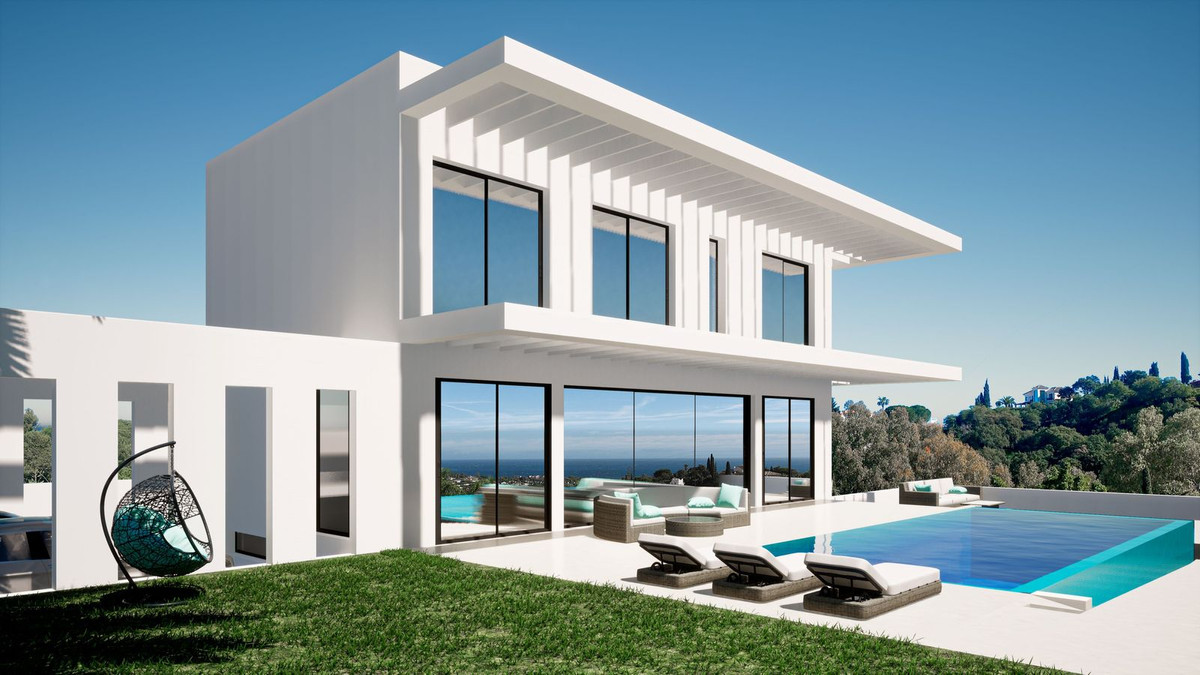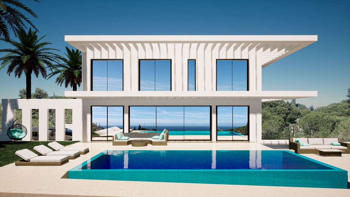 LUXURY CONTEMPORARY TAILOR-MADE VILLA IN MARBELLA WITH BUILDING LICENSE. Tailor made villa, can be customized to clients wishes, plot + project. Price from. This contemporary 2-level villa is designed considering optimized distribution of space, natural illumination, and ventilation in all rooms, and with the perfect exploitation of each square meter of the house, which means - no wasted space or energy! The entrance of the villa opens into a spacious entrance hall with wardrobes, leading to the spacious living room with open plan kitchen with an integrated kitchen island. Large floor-to-ceiling energy efficient windows give you direct access to the pool and the garden area. There is also a guest toilet on the ground floor. A magnificent living room area has been designed to fully enjoy and contemplate the beautiful views that Costa del Sol has to offer. Floating glass staircase leads you to the upper floor where you will find two large bedrooms with a shared bathroom and a lot of built-in wardrobe space. A master bedroom is equipped with an ensuite bathroom and a large walk-in wardrobe. You can access the roof terrace directly from the first floor through well designed staircase. The roof terrace has pre installation for solar panels. There are many flexible options for you as the buyer of this project. You can add a full basement with cinema room/ game room, laundry room, separate kitchen, wine cellar, sauna and possibility to make extra rooms as well. The villa is also designed so you can easily make a 4th bedroom on the ground level. The outside area offers spacious covered terraces, a beautiful private pool and a landscaped garden plus your own private parking space for two cars, connected to the villa.
