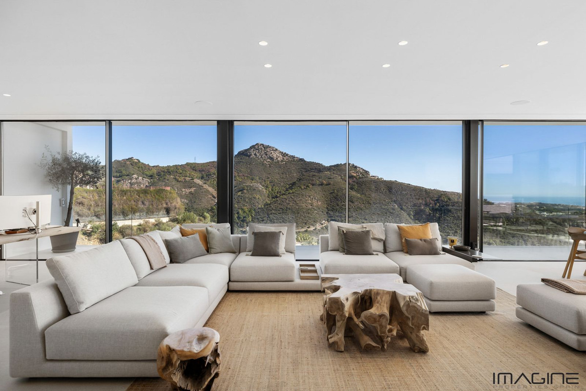 Villa Imagine: Luxury Redefined with Endless Mediterranean Views to Gibraltar & Africa Welcome to Villa Imagine - Where Timeless Elegance Meets Breathtaking Sea & Mountain Horizons Nestled in the prestigious and tranquil hills of Monte Mayor, Benahavis, Villa Imagine represents the pinnacle of luxury living where elegance and sophistication meet unparalleled privacy and breathtaking sea and mountain views. Designed by one of Marbella’s most renowned and internationally awarded architects, this villa embodies a sanctuary of peace amongst the vibrant life of the Costa Del Sol. Location - A Confluence of Beauty and Convenience Villa Imagine sits majestically between the charm of Marbella and the serenity of Estepona in the exclusive Monte Mayor community. This secured and gated haven offers not just a residence but a lifestyle highlighted by nature, tranquillity, and panoramic views over the Mediterranean stretching to Gibraltar and Morocco. Within a mere 5 minutes from the prestigious Marbella Club Golf Resort, 10 minutes from Villa Padierna Golf & Hotel, 18 minutes to the glamourous Puerto Banus, and 15 minutes to Estepona, Villa Imagine places you perfectly within the lap of luxury and connectivity. Architectural and Interior Elegance Every inch of Villa Imagine is a testament to luxury living with its sleek modern design seamlessly blending with bohemian chic touches. Expansive windows in the living areas ensure the interior is bathed in natural light while effortlessly framing the stunning vistas of the sea and the mountains. Whether it's the state-of-the-art, fully equipped kitchen or the spacious dining and living areas, each corner of Villa Imagine has been designed for an unrivalled living experience. Outdoor Splendour Step outside to discover the villa’s crown jewel - an exquisite heated infinity pool that merges with the horizon, providing an immersive swimming experience against a backdrop of the Mediterranean. The expansive terrace, stylishly furnished with a bohemian chic flair, offers versatile outdoor living spaces, including a dining area, comforting lounge sets, TV area, and plush sun loungers for basking in the serene environment. Thoughtfully Designed Amenities Villa Imagine caters to every need. Beyond its serene bedrooms offering awe-inspiring views, the villa hosts a designated office space for those who blend work with pleasure, all without stepping away from the picturesque surroundings. The flexibility of the villa’s design also allows the sixth bedroom to transform into a multifunctional space, be it a private gym or a secluded retreat for meditation on the terrace. A Lifestyle Like No Other Villa Imagine offers more than just a home; it provides an entry into a lifestyle marked by luxury, exclusivity, and tranquility. From its iconic location in Benahavis, close to some of the best golf courses and luxurious resorts, to its meticulously designed living spaces, every aspect of Villa Imagine is curated to surpass expectations. For those who seek to dwell in the splendour of nature while enjoying the pinnacle of luxurious living, Villa Imagine beckons. Experience the epitome of elegant exclusivity—discover Villa Imagine in het exclusieve Monte Mayor - Benahavis. Detached Villa, Benahavís, Costa del Sol. 6 Bedrooms, 5 Bathrooms, 2 outdoor showers, Total Built 628 m², Terrace 150 m², Garden/Plot 3100 m². Setting : Country, Close To Golf, Close To Town, Close To Forest, Urbanisation. Orientation : East, South, West. Condition : Excellent. Pool : Private, Heated. Climate Control : Air Conditioning, Hot A/C, Cold A/C, U/F Heating, U/F/H Bathrooms. Views : Sea, Mountain, Country, Panoramic, Pool, Forest. Features : Covered Terrace, Fitted Wardrobes, Private Terrace, Solarium, Satellite TV, WiFi, Guest Apartment, Storage Room, Utility Room, Double Glazing, Domotics, Fiber Optic. Kitchen : Fully Fitted. Garden : Private, Landscaped. Security : Gated Complex, Entry Phone, Alarm System, 24 Hour Security, Safe. Parking : Covered, More Than One, Private. Utilities : Electricity, Drinkable Water, 39 Photovoltaic solar panels ( nearly energy neutral ). Category : Golf, Luxury, Contemporary.