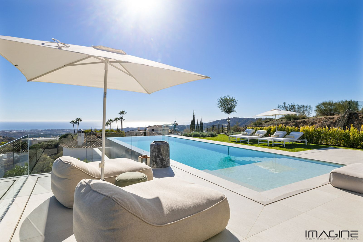 Setting: Country, Close To Golf, Close To Town, Close To Forest, Urbanisation Orientation: East, South, West Condition: Excellent Pool: Private, Heated Climate Control: Air Conditioning, Hot A/C, Cold A/C, U/F Heating, U/F/H Bathrooms Views: Sea, Mountain, Country, Panoramic, Pool, Forest Features: Covered Terrace, Fitted Wardrobes, Private Terrace, Solarium, Satellite TV, WiFi, Guest Apartment, Storage Room, Utility Room, Double Glazing, Domotics, Fiber Optic Kitchen: Fully Fitted Garden: Private, Landscaped Security: Gated Complex, Entry Phone, Alarm System, 24 Hour Security, Safe Parking: Covered, More Than One, Private Utilities: Electricity, Drinkable Water, Photovoltaic solar panels Category: Golf, Luxury, Contemporary