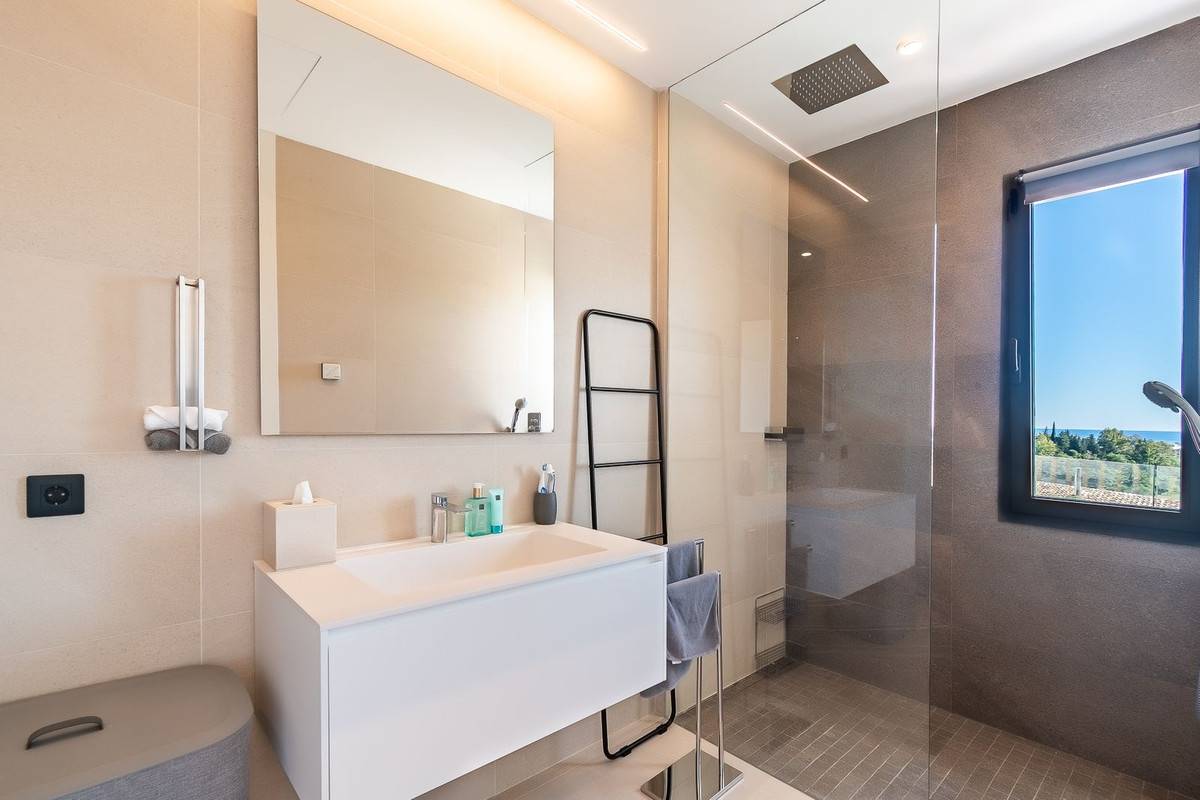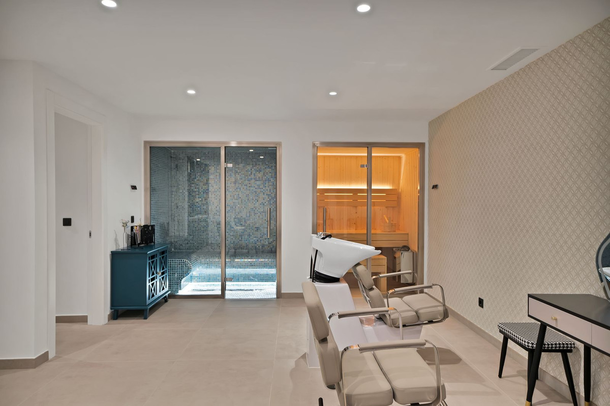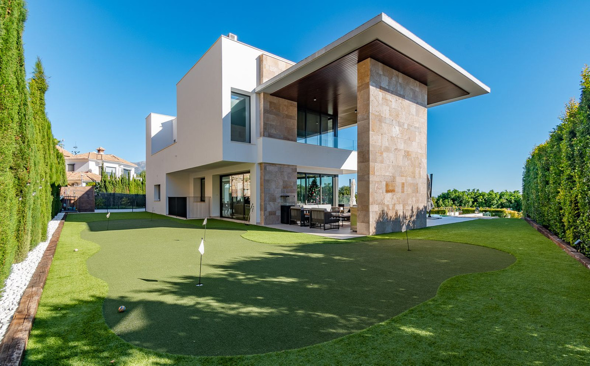 Dream Villa for Golfers with Panoramic Views in Puerto del Almendro, Benahavís Located in the exclusive and private gated community of La Resina, in Puerto del Almendro, this stunning luxury villa has been designed and decorated with an unparalleled level of detail and sophistication. With 930 m² of built space on a 1,036 m² plot, this property represents the perfect fusion of elegance, comfort, and cutting-edge technology. Situated on one of the best plots in the area, the villa offers breathtaking 270° panoramic views of the sea and mountains, creating a unique setting of peace, privacy, and natural beauty. Additionally, it is located within a secure gated community with 24/7 security, ensuring maximum safety and tranquility. A Golfer’s Paradise Designed for golf enthusiasts, the villa features putting greens in the garden and a professional golf simulator, offering a premium experience without leaving home. Wellness and Relaxation in Every Space Luxury is evident in every detail, from the private spa, which includes a Turkish sauna and Swedish sauna, to the fully equipped gym with state-of-the-art fitness technology. Outdoors, relaxation is guaranteed with a heated jacuzzi and a stunning heated private pool, surrounded by beautifully landscaped gardens. The property also boasts a covered chill-out area with a TV, perfect for enjoying the outdoors in total comfort. Layout and Exclusive Features 3 spacious bedrooms in the main villa, each with an en-suite bathroom. Independent apartment, perfect for guests or staff, featuring 1 bedroom, 1 full bathroom, and a fully equipped kitchen. Private hair salon, offering a personal care experience at home. Indoor elevator, ensuring accessibility throughout the house. Game room, ideal for family entertainment. Functional and Versatile Spaces Indoor garage with space for 3 cars. Outdoor parking for 2 cars, which can also be used as storage or converted into an additional apartment. Solar panels, ensuring energy efficiency and sustainability. Every corner of this villa has been carefully designed with the highest quality materials, achieving the perfect balance between luxury, modernity, and comfort. If you are looking for an exclusive residence where privacy, security, and design come together in an unparalleled setting, this villa is simply one of a kind.