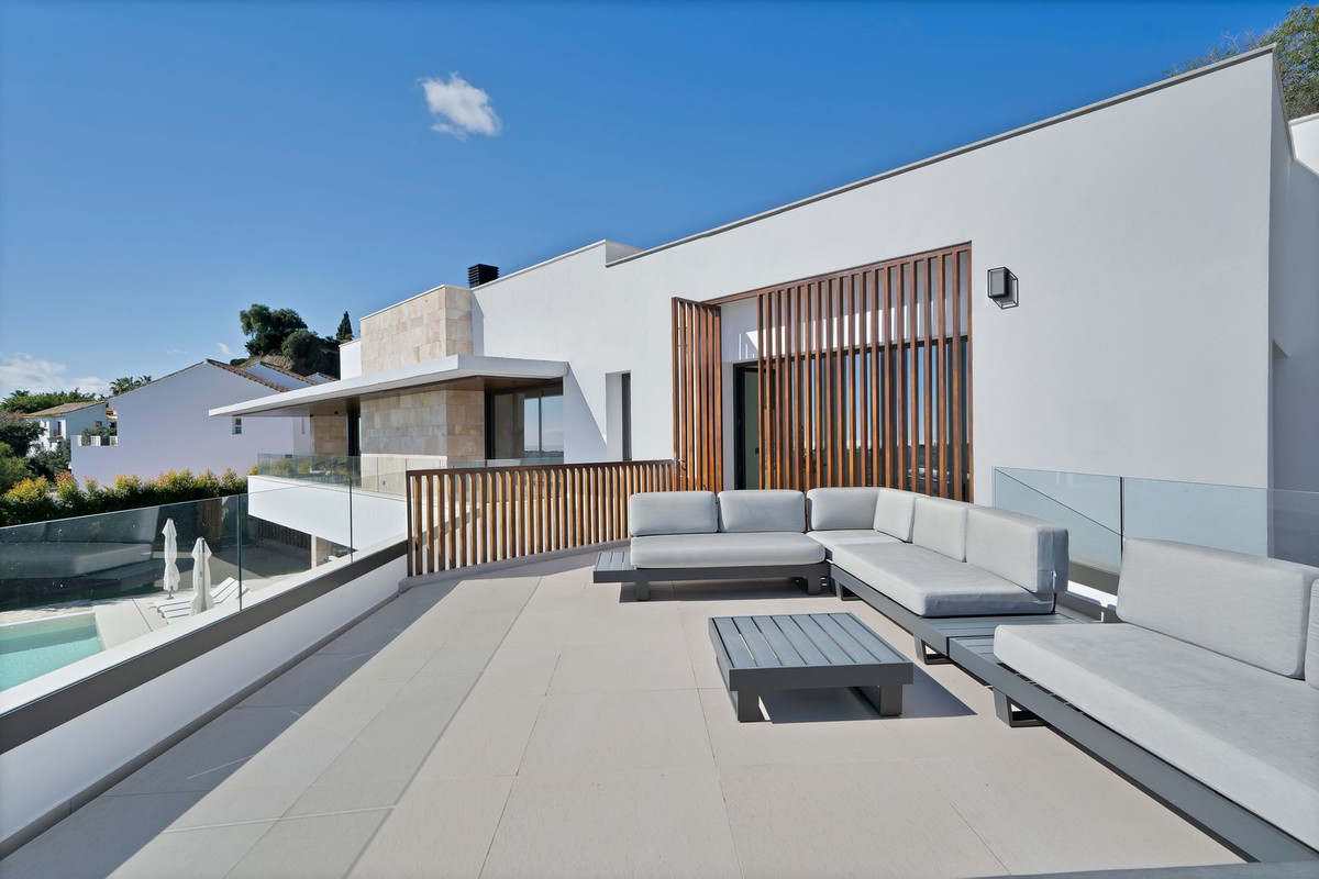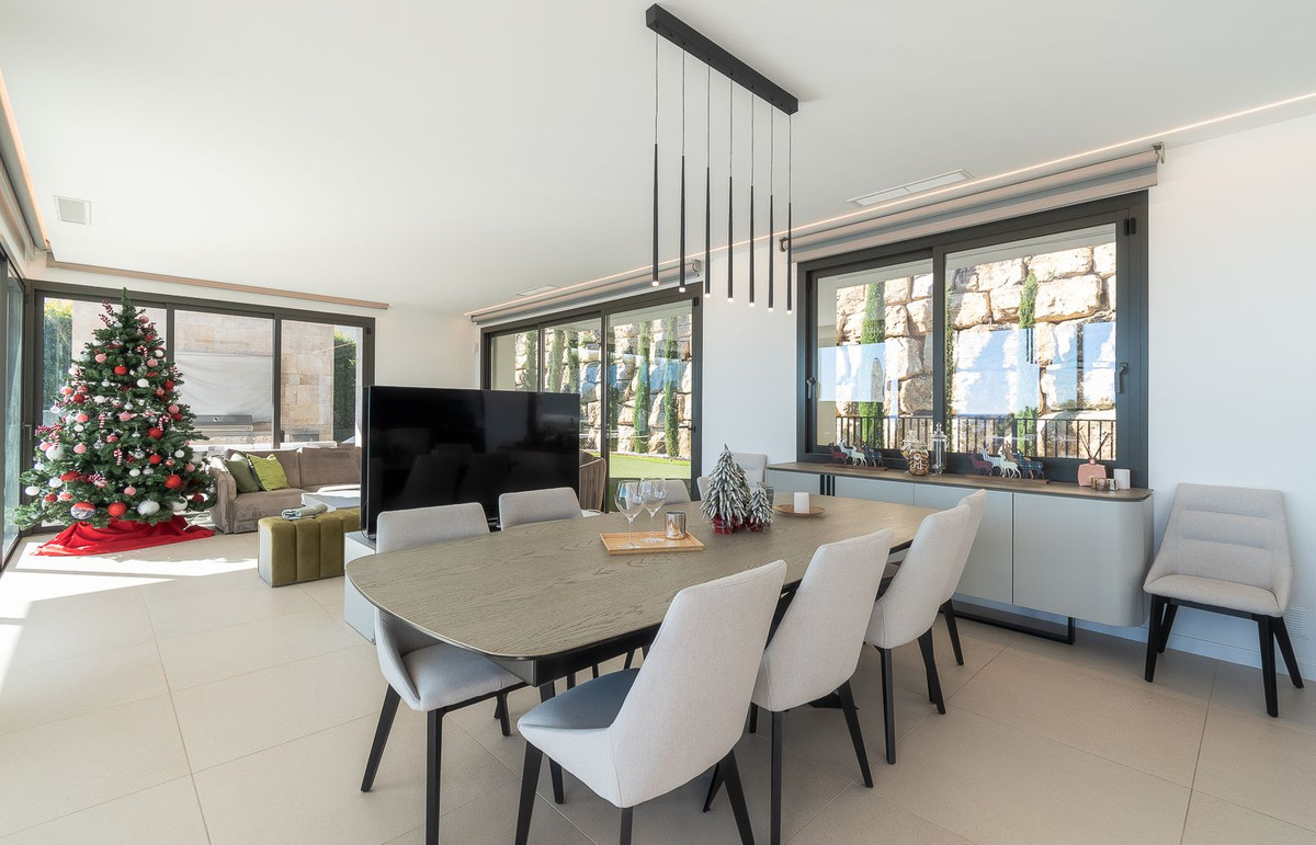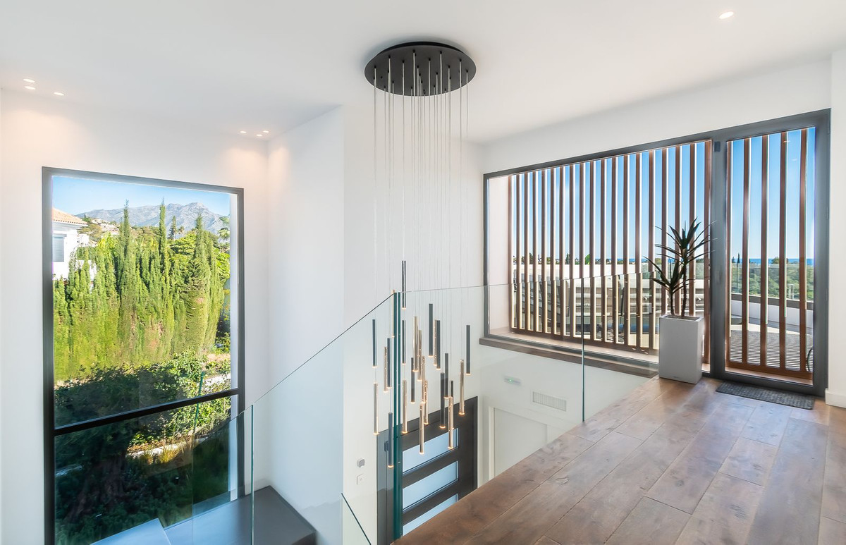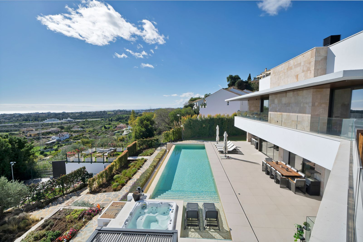 Setting: Close To Golf, Urbanisation Orientation: South Condition: Excellent Pool: Private, Heated Climate Control: Air Conditioning, Central Heating, U/F/H Bathrooms Views: Sea, Mountain, Golf, Country, Panoramic, Garden, Pool Features: Covered Terrace, Lift, Fitted Wardrobes, Private Terrace, Solarium, Satellite TV, WiFi, Gym, Sauna, Games Room, Guest Apartment, Guest House, Storage Room, Utility Room, Ensuite Bathroom, Jacuzzi, Barbeque, Double Glazing, Domotics, Day Care, Staff Accommodation, Basement, Fiber Optic Furniture: Fully Furnished Kitchen: Fully Fitted Garden: Private, Landscaped, Easy Maintenance Security: Gated Complex, Electric Blinds, Entry Phone, Alarm System, 24 Hour Security, Safe Parking: Underground, Garage, Covered, More Than One, Private Utilities: Electricity, Drinkable Water, Telephone, Photovoltaic solar panels Category: Distressed, Golf, Investment, Luxury, Contemporary