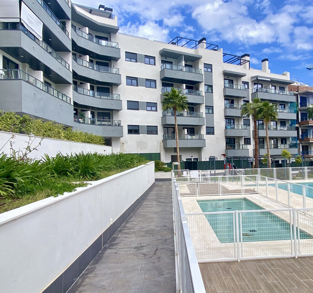 This apartment is located in a new development in the area of Las Lagunas, Mijas Costa, Malaga, this brand-new apartment offers an exceptional living experience. Designed with modernity and comfort in mind.. Its location ensures proximity to essential amenities, schools, shops, and transport links, making it an ideal choice for families and professionals alike. The community is a mix of nationalities and a blend of permanent residents and Holliday homes. The apartment boasts three spacious bedrooms, including a master bedroom with an en-suite bathroom, and an additional family bathroom. The interiors feature an open-plan living area with wooden floors and glass doors that lead to a private terrace, perfect for enjoying the serene country and mountain views. The fully fitted kitchen is equipped with modern appliances, while fitted wardrobes and a storage room provide ample space. Residents can enjoy a range of communal facilities, including a swimming pool, maintained gardens, and a gated community with a secure entrance. The property also includes a garage with its privat parking space. Additional features include air conditioning, double glazing, a covered terrace, and an optional furniture package. The property is also conveniently located near golf courses, children’s playgrounds, and the vibrant town centre. With its blend of luxury, practicality, and location, this apartment is a rare find in the Mijas Costa area.