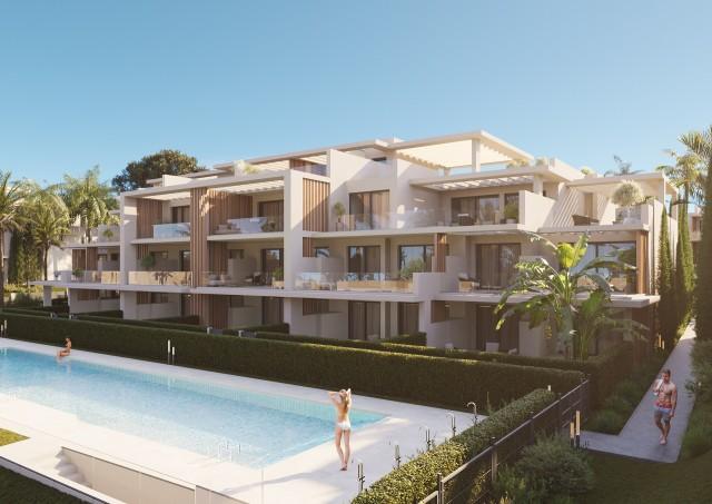 Completion of construction: Second quarter of 2027 A new construction project of 57 luxury apartments in the prestigious New Golden Mile, Estepona. It will consist of ground-floor apartments with large gardens, penthouses with solarium and duplex penthouses, communal green areas, swimming pools, underground parking, storage rooms, and elevators. With 7 layouts from 2 to 4 bedrooms, each apartment has incredible sea views, 2 parking spaces, and 1 storage room included in the price. Each home has been designed with great detail, featuring a fully equipped kitchen and bathroom, as well as bedrooms with built-in wardrobes, which ensure practicality and comfort in daily life. Discover the essence of contemporary luxury, where luxury living is redefined with an exclusive focus on a prime location, cutting-edge architecture, uncompromising security, absolute privacy, and a firm commitment to sustainability. This exclusive south- and west-facing garden apartment offers comfortable and modern living just steps from the beach. Located in a well-maintained gated community, it features a private garden, communal pool, gym, paddle tennis court, and tennis court. The home features a fitted kitchen, hot/cold air conditioning, underfloor heating, built-in wardrobes, and an en-suite bathroom. It includes two underground parking spaces, a storage room, and a basement. Overlooking the garden and pool, this apartment stands out for its light, privacy, and proximity to shops, golf courses, and sports facilities, making it ideal for year-round enjoyment. Garden Apartment, Walking distance to beach, Fitted Kitchen, Underground parking, Communal Pool, Garden: Private and Community, Facing: South and West Views: Garden, Pool Features: 2 Parking Places, 5-10 minutes to Golf Course, 5-10 minutes to shops, Air Conditioning Hot/Cold, Basement, Community gym, Conveniently Situated for Golf, Conveniently Situated Tennis, Double glazing windows, En suite bathroom, Fitted Kitchen, Fitted Wardrobes, Garden and Pool View, Gated Complex, Newly Built, Padel court, Pre-installed Air-Conditioning, Private Terrace, Solarium, Storage room, Tennis Court, Underfloor Heating, Underground parking, Walking distance to beach, Walking distance to shops, Well maintained community