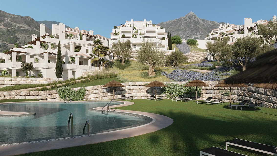 New Development: Prices from €497,500 to €781,500. [Bedrooms: 2 - 3] [Bathrooms: 1 - 3] [Built size: 109m2 - 182m2]. KEY READY! This development is an exclusive completed residential complex designed with a contemporary and elegant style, created for those seeking comfort, quality, and a sophisticated lifestyle. The project offers 2- and 3-bedroom homes as well as unique penthouses, all with large terraces and open layouts that maximize natural light. The careful selection of high-end materials and finishes guarantees modern, functional spaces with a design that combines aesthetics with practicality. The residential complex stands out for its spectacular common areas, designed for the well-being and socialization of its residents. Among them are extensive tropical gardens, several designer swimming pools, solarium, relaxation areas, and spaces created to enjoy the privileged climate of the Costa del Sol. In addition, the complex offers a fully equipped gym, spa, and wellness area, creating an ideal environment to care for both body and mind without leaving home. Located in the heart of prestigious Nueva Andalucía, this development enjoys a strategic location in one of Marbella’s most sought-after areas. Its surroundings combine the tranquility of a residential enclave with proximity to top-level golf courses, shopping centers, restaurants, and international schools. Just a few minutes’ drive away is Puerto Banús, world-renowned for its exclusivity, leisure offer, and vibrant social life. Residents of this project benefit from a complete range of services that enhance the living experience. These include 24-hour private security, underground parking, storage rooms, and maintenance services designed to ensure maximum comfort. All this makes this development an ideal option for those looking to invest in a property that not only offers construction quality but also a premium lifestyle in one of the Mediterranean’s most desirable locations.
