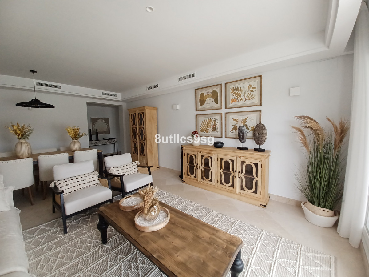 In fully refurbished urbanization, in one of the best areas of Nueva Andalucia, Marbella, with spectacular views, very close to the best golf courses. With two bedrooms, two bathrooms. Living dining room with separate kitchen, fully equipped with Siemens appliances, both with exit to the large terrace. One bedroom with bathroom en suite and private terrace. The property has air conditioning hot and cold, marble floors and top qualities. A subway parking space and a storage room. The urbanization offers two swimming pools, large green areas and gym. Security 24 hours. Just two minutes from Los Naranjos Golf, Las Brisas Golf and Aloha Golf. With all the services and leisure areas of Nueva Andalucia and 5 minutes from Puerto Banus.