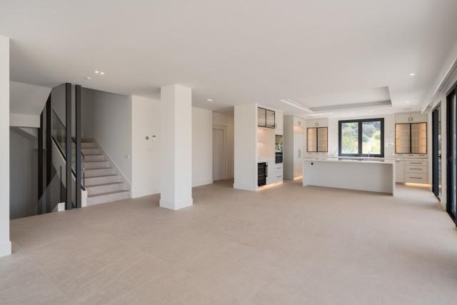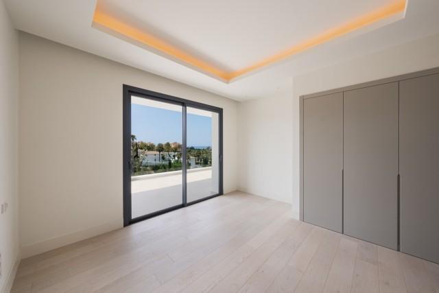 A stunning contemporary design residence located in the prestigious La Resina Golf community, in the growing residential area of ​​Estepona. Designed by renowned architect Francisco Martínez Galván, this four-level villa offers 674 m² of built area, with 503 m² of elegant interior spaces and 171 m² of terraces that perfectly integrate indoor comfort with outdoor enjoyment. From its exclusive rooftop access, which includes a Jacuzzi and pre-installed barbecue area, panoramic views of the golf course and the Mediterranean Sea can be enjoyed. The main floor features an open-plan layout with a living room, dining room, and designer kitchen with a natural stone island, as well as a secondary kitchen for events. Large windows connect to the saltwater infinity pool surrounded by tropical vegetation. It also includes an en-suite guest bedroom. Upstairs, the master suite stands out with its private terrace, dressing room, and marble bathroom with a freestanding bathtub. A second en-suite bedroom completes the level. The basement offers customization options, including a gym, spa, or private cinema. The villa combines luxury, privacy, and proximity to amenities, international schools, beaches, and leisure options, providing an unparalleled residential experience on the Costa del Sol. Villa, Frontline Golf, Fitted Kitchen, Parking: Covered, Pool: Private, Garden: Private, Facing: Southeast Views: Golf, Open views, Panoramic, Sea, Surrounds Features: 2 Parking Places, Alarm System, Automatic Irrigation System, Barbecue, Basement, Close to schools, Contemporary style, Conveniently Situated for Golf, Conveniently Situated Schools, Covered Terrace, Easily maintained gardens, En suite bathroom, Fitted Wardrobes, Frontline Golf, Garden, Gated Complex, Guest Wardrobe, Jacuzzi, Laundry room, Lift, Living room, Luminous, Modern Style, Multipurpose space, Parking, Private pool, Salt water pool, Sea Views, Spacious Accommodation, Storage room, Stylish Accommodation