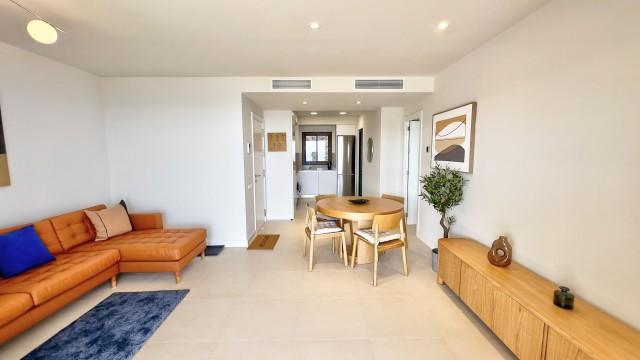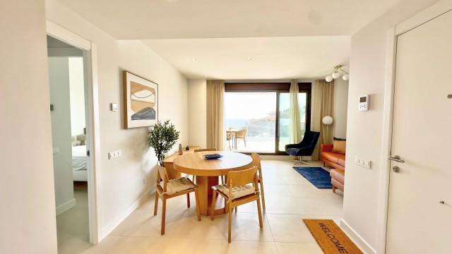 Exclusive Designer Home with Magnificent Sea Views This elegant property has been designed to offer comfort, style, and functionality in a privileged setting with the exceptional climate that characterizes the Costa del Sol. It features a spacious and bright living-dining room with an open kitchen, fully equipped with high-end appliances; two bedrooms, two bathrooms, and a practical laundry area. The layout has been carefully designed to make the most of natural light thanks to its south and west orientation, creating spacious and highly functional spaces that promote comfort and well-being. The 28 m² terrace offers stunning panoramic sea views, becoming the perfect space to enjoy the tranquility and privacy this home provides. The property is sold furnished, with designer furniture intended to blend seamlessly with the spaces and ensure maximum comfort from day one. High-quality finishes include double-glazed windows and underfloor heating, providing extra comfort in any season. Common Areas and Amenities The residential complex offers spaces designed for the well-being of its residents, with two swimming pools, landscaped gardens, and communal areas that invite relaxation, as well as a garage and storage room included for greater convenience and security. Privileged Location Located in a quiet area, this property combines the calm of a natural environment with the proximity to the vibrant city of Málaga and surrounding towns. Nearby, you can enjoy beaches certified with the Q for quality, as well as a wide range of outdoor activities such as golf, cycling, hiking, paddle surfing, or water sports. The property offers excellent connections: just 30 minutes from the airport and the AVE high-speed train station; with quick access to essential services such as international schools (Novaschool), supermarkets, sports centers, and leisure options for the whole family. Your New Home on the Costa del Sol A place where design, comfort, environment, and magnificent sea views come together to offer an exceptional quality of life under the Mediterranean sun. Contact us for more information.