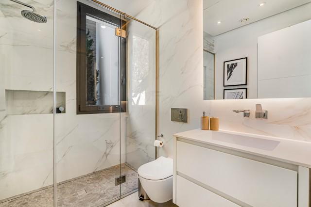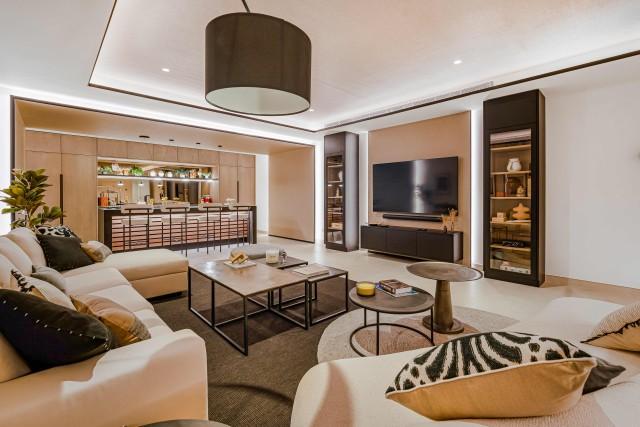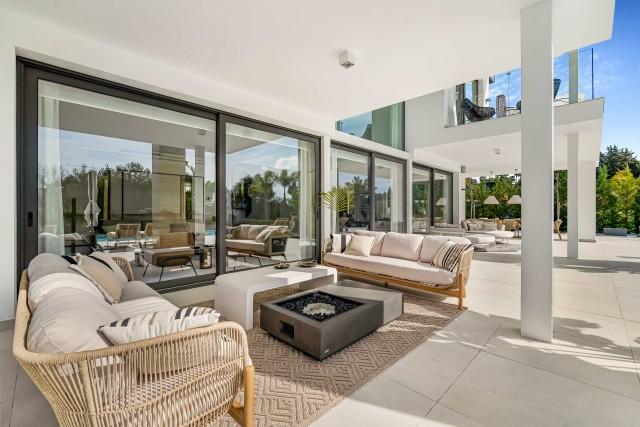 Delightful six-bedroom villa facing south in the esteemed gated community of Lomas del Marques, just above the renowned Puente Romano Resort on Marbella’s Golden Mile. Perfectly positioned within a sauntering distance to the beach and mere moments from both Puerto Banús and Marbella Town, this exquisite property marries contemporary opulence with unparalleled convenience. Nestled upon a meticulously landscaped private plot, this villa boasts a heated swimming pool ensconced by verdant foliage, crafting an idyllic outdoor sanctuary. The ground floor unveils an open-plan living and dining area flowing seamlessly into the garden, alongside a state-of-the-art kitchen outfitted with top-tier appliances and a stylish guest suite. Ascending to the first floor, discover two refined guest suites and a sumptuous master suite featuring a walk-in wardrobe and private terrace. From here, ascend to a capacious solarium offering awe-inspiring sea vistas, complete with a jacuzzi and outdoor kitchen—perfect for elegant gatherings or leisurely repose. The lower level of the villa is dedicated to leisure and entertainment, featuring a lounge area, bar, pool table, and two additional guest suites. This level also grants access to a private garage accommodating three cars, equipped with electric car chargers. Additional amenities include hot and cold air-conditioning, fitted wardrobes, a comprehensive alarm system with surveillance cameras, and an elevator connecting all floors of this splendid abode. Whether seeking a dream family residence or a lucrative rental investment, this exceptional villa, complete with a tourist license, is ideally suited for year-round enjoyment. With its premier location and impeccable design, this property unequivocally represents one of Marbella’s most distinguished offerings. Cheers to refined living, wouldn’t you say?