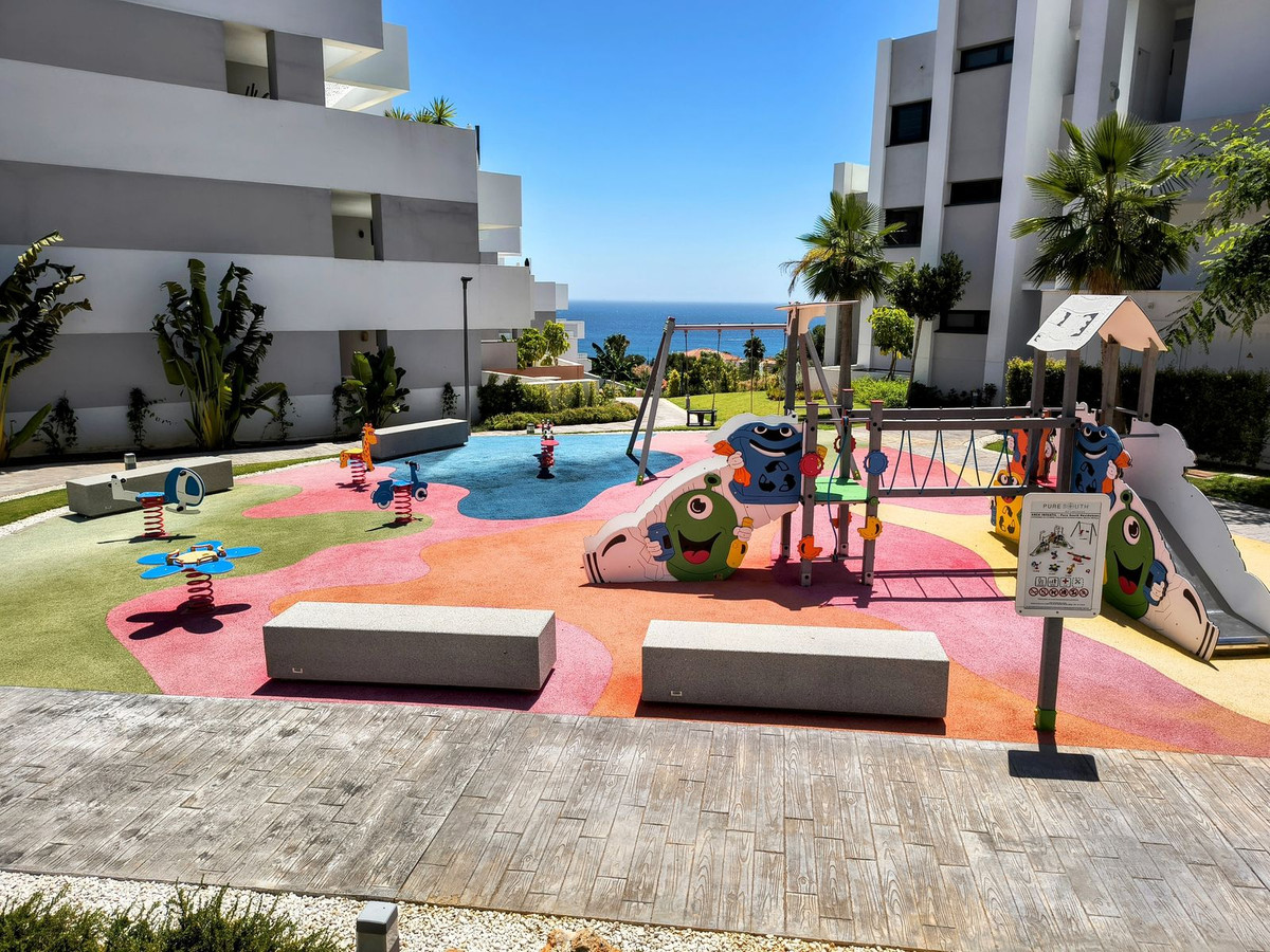 Fantastic opportunity!! Stunning new build apartment with sea views! Situated in Pure South, the best new development in La Duquesa, this stunning elevated ground floor apartment offers everything you would ant from a holiday home or permanent residence. The property is only 2 years old and is sold fully furnished so completely key ready. The property itself is fully equipped with an open plan kitchen/dining area which offers plenty of natural light. You also have a seperate laundry room. 2 bedrooms and 2 bathrooms with your master bedroom having it's own en suite bathroom. From your huge south facing 43m2 terrace you have stunning sea views. The urbanisation offers everything you could ask for. You have 2 swimming pools, outdoor children's play area, outdoor gym, communal terrace area with chaires and beds and a picnic area tables and benches. On top of this you have a communal social room which is equipped with sofas, chairs and tables as well as pool table. On top of this it is also fully equipped with a gym and spa area which includes a sauna and jacuzzi. Keys in office for easy viewings Middle Floor Apartment, La Duquesa, Costa del Sol. 2 Bedrooms, 2 Bathrooms, Built 79 m², Terrace 32 m². Setting : Close To Golf, Close To Port, Close To Shops, Close To Town, Close To Schools, Close To Marina, Urbanisation. Orientation : South. Condition : Excellent, New Construction. Pool : Communal, Children`s Pool. Climate Control : Air Conditioning, Hot A/C, Cold A/C. Views : Sea. Features : Covered Terrace, Lift, Fitted Wardrobes, Near Transport, Private Terrace, Gym, Sauna, Storage Room, Utility Room, Ensuite Bathroom, Jacuzzi, Double Glazing, Fiber Optic. Furniture : Fully Furnished. Kitchen : Fully Fitted. Garden : Communal, Landscaped, Easy Maintenance. Security : Gated Complex, Entry Phone, Alarm System, Safe. Parking : Underground, Garage, Covered. Utilities : Electricity. Category : Bargain, Holiday Homes, Investment, Resale.