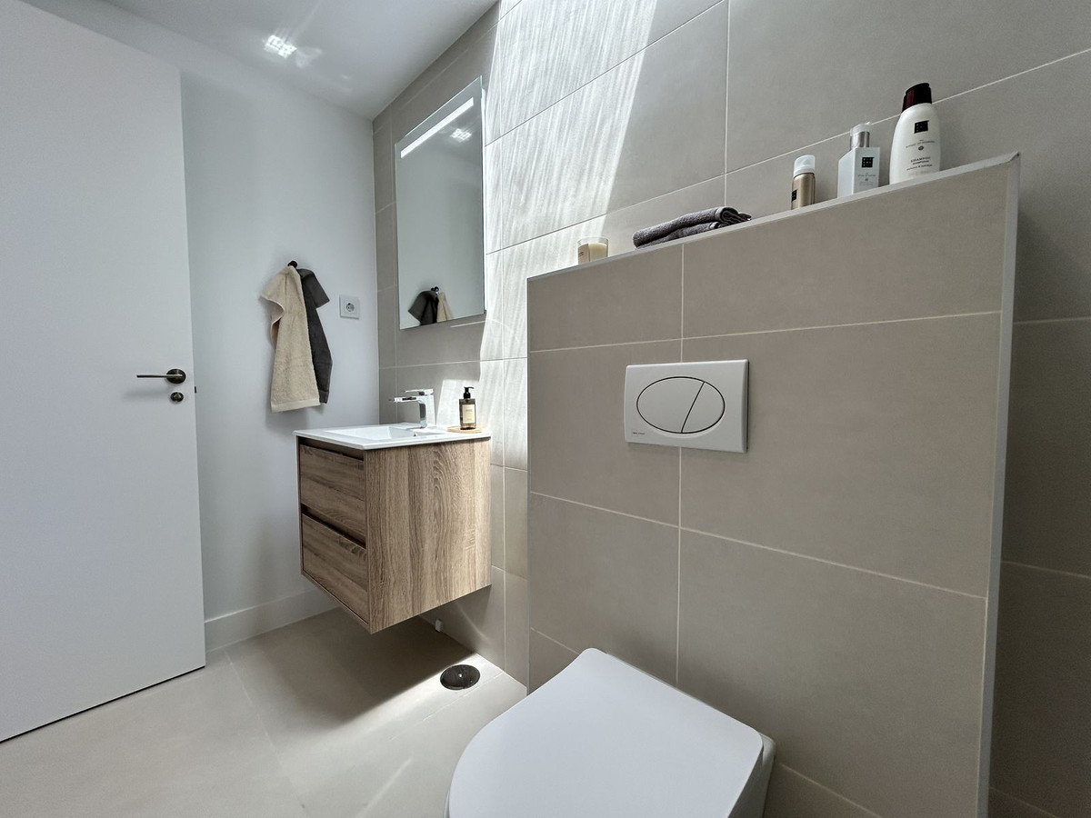 Exclusive 3-bedroom penthouse with a sea-to-sky horizon and southwest orientation that ensures sun, views, and privacy throughout the day. Located in a leading residential in the Higuerón area, with more than 100,000 m² of gardens, several outdoor pools, a solarium, a jacuzzi, and a children's area; a growing Mediterranean oasis, well-connected and surrounded by nature. The home comes fully furnished with high-quality designer furniture, with a comprehensive design and interior design project by "Ikonia Ilusion&Arte": selected pieces, carefully curated lighting, and a contemporary palette that enhances the spaciousness of the space. The living room and kitchen are integrated and open onto the large terrace through high-performance sliding doors, maximizing the natural light and outdoor living. Comfort and efficiency: air-source heat/air conditioning in all rooms, underfloor heating in bathrooms, aluminum/PVC exterior carpentry with double thermoacoustic and security glazing, and pre-installed motorized blinds in the bedrooms and living room. Home automation with smoke and flood detection, TV sockets in the living room, bedrooms, and terrace, and Jung mechanisms. The fully equipped kitchen includes wall and base units, a Silestone countertop, and paneled appliances with an A energy rating: stove, oven, microwave, hood, refrigerator, dishwasher, and washer-dryer. Bathrooms with wall-hung toilets, extra-flat shower trays, and screens; the master bathroom has a double sink and storage unit. 75x75 cm porcelain flooring throughout. 2.10 m interior doors, built-in wardrobes lined with a bar and drawers, and glass railings on secure terraces. The complex is committed to sustainability through thermal insulation and pre-installation for electric vehicle charging in the building. Two parking spaces are included, and a storage room is available depending on availability. A turnkey option for moving in from day one, enjoying the Mediterranean and consolidating a solid investment in a premium location. The buyer is exempt from agency fees. Expenses arising from the purchase process, such as notary fees, registration fees, or transfer taxes, are not included in the price.