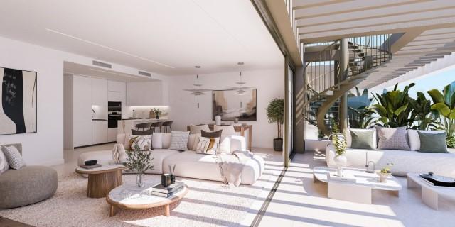 An innovative residential project located in Las Mesas, one of Estepona's most desirable destinations. The development offers 164 exclusive one-, two-, and three-bedroom homes with stunning sea views, suited to different lifestyles. All homes feature double terraces, ideal for enjoying the Mediterranean climate year-round. The variety of properties, from functional apartments to spacious residences, ensures that every buyer will find their ideal home. With prices ranging from €300,000 to €1,200,000, it is an attractive option for both a primary and secondary residence. The development was designed by the prestigious Maiz y Díaz studio, which created a modern, bright complex in harmony with its surroundings. The development is designed for the enjoyment of all its residents, featuring facilities adapted to all lifestyles and ages. Common areas are dedicated to providing maximum well-being: gardens, swimming pools, a gym, and a children's playground. Duplex Penthouse, Outskirts of Town, Equipped Kitchen, Underground parking, Communal Pool, Garden: Community, Facing: South Views: Bay, Garden, Sea, Surrounds Features: 2 Community Pools, 5-10 minutes to Golf Course, Children Area, Close to all Amenities, Close to schools, Community Garden, Community gym, Community Pool, Contemporary style, Conveniently Situated for Golf, Conveniently Situated Schools, Fitted Kitchen, Gated Complex, Heated Indoor Pool, Luminous, Modern Style, Near amenities, Near Transport, Sea Views, Spa, Spacious Accommodation, Storage room, Underground parking, Walking distance to beach, Walking Distance to Cafés, Walking distance to rest., Walking distance to shops, Walking distance to t. centre