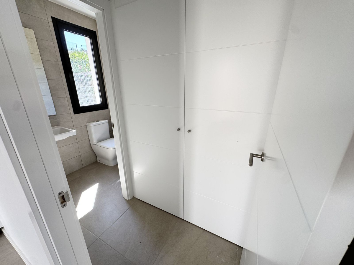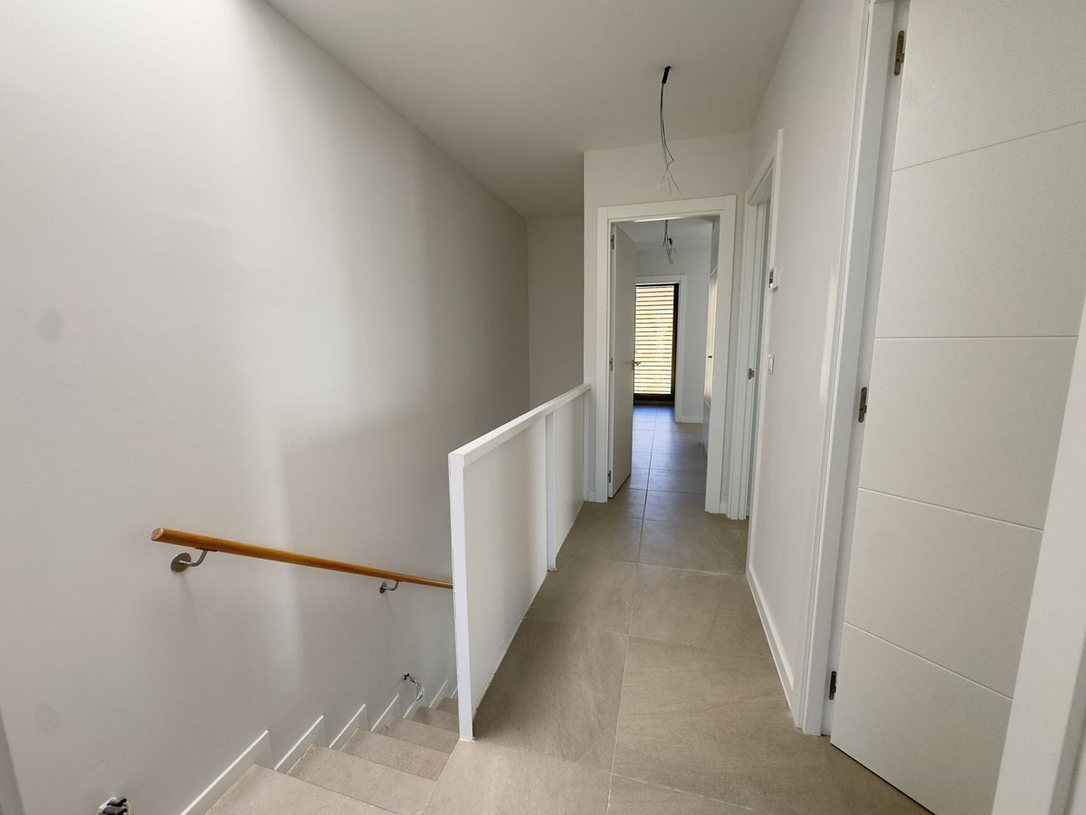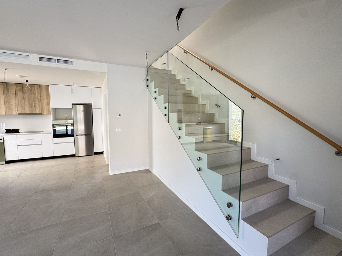 This stunning, newly completed modern contemporary 3 bedroom semi-detached villa in urbanisation Alya offers stylish contemporary living in a sought-after residential area. Built to the highest standards with a sleek architectural design, this property provides the perfect blend of comfort, practicality, and elegance. Featuring 3 spacious bedrooms with built-in wardrobes, The master bedroom features an ensuite, a large bedroom window. The bedroom windows come with shutters for both privacy and shade. The open-plan living space connects seamlessly to the fully fitted kitchen, which comes complete with modern appliances and high-quality cabinetry. A striking staircase with glass balustrade enhances the modern design and creates a bright, airy atmosphere. Externally, the villa offers a private garden which is ready to be landscaped to the buyer’s taste, providing the opportunity to create a personalized outdoor retreat (examples in the photos of what they can do). The development also includes access to a community swimming pool, gym and co working area. Location Highlights: Just 1.2 km from the beach, with excellent road access to both Marbella and Málaga, and surrounded by several prestigious golf clubs, this property combines modern comfort with an unbeatable lifestyle on the Costa del Sol. With 134 square metres of built space, this brand-new semi detached villa is the ideal choice for those seeking a stylish, low-maintenance modern home with excellent potential.