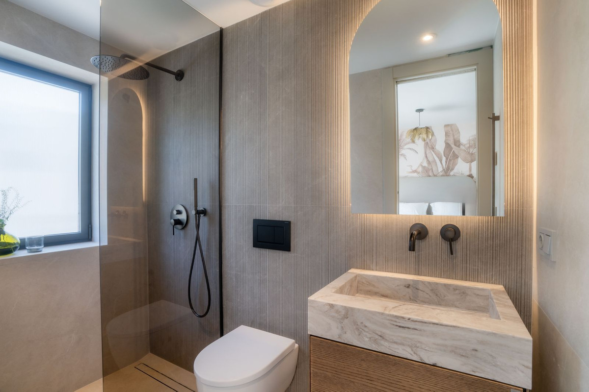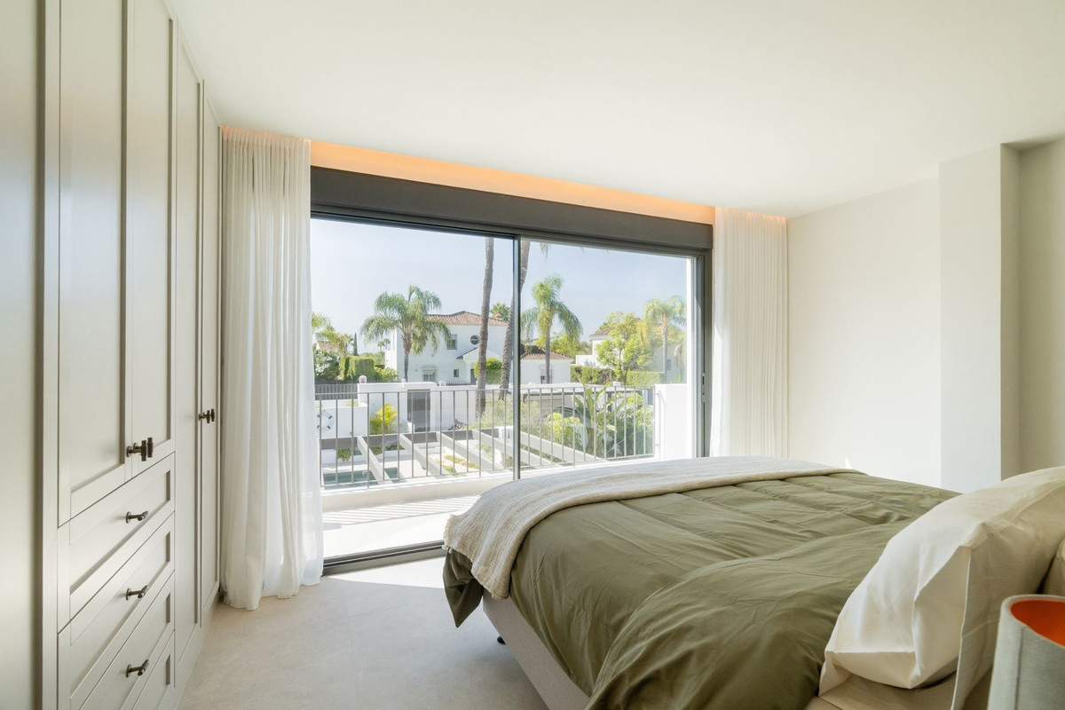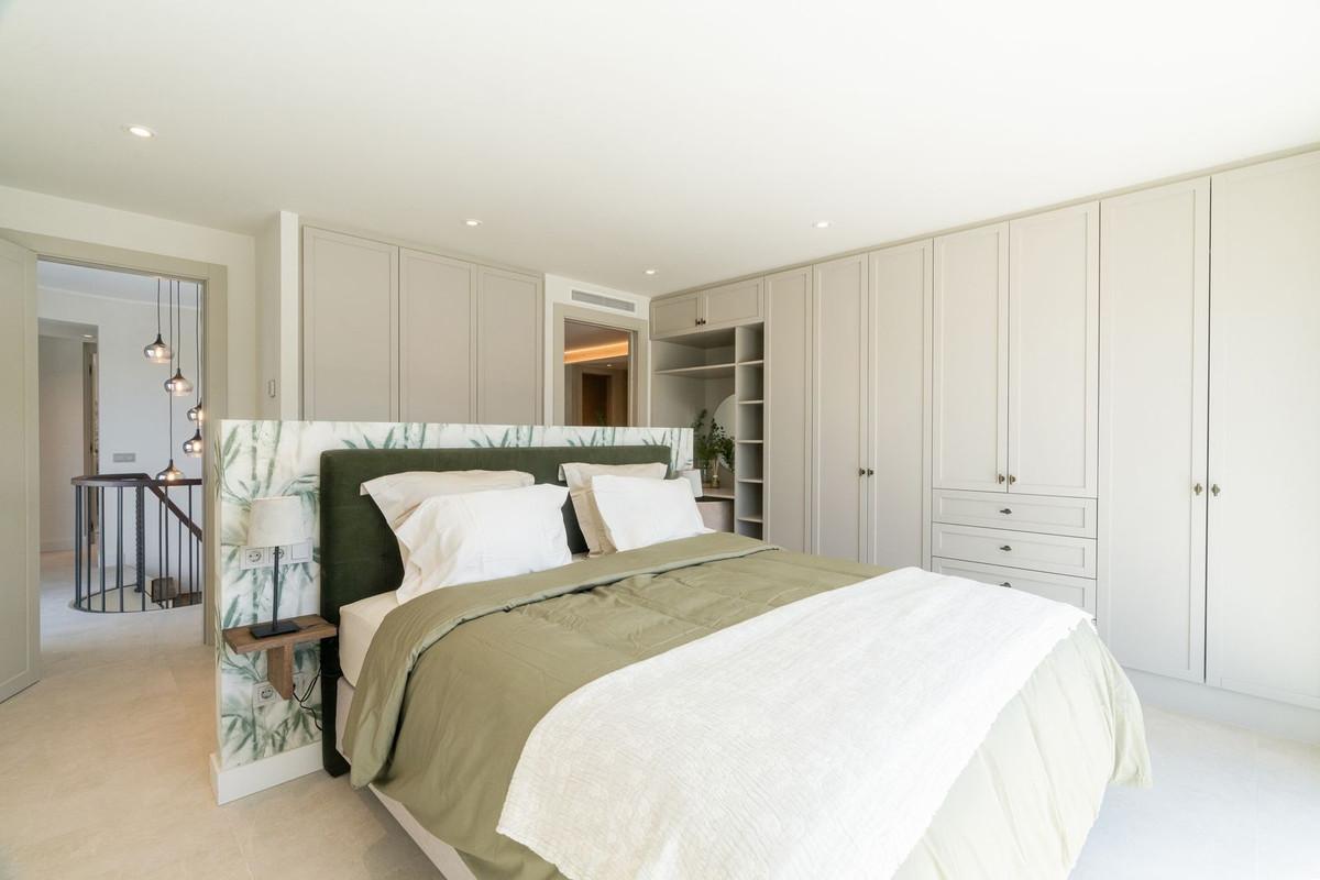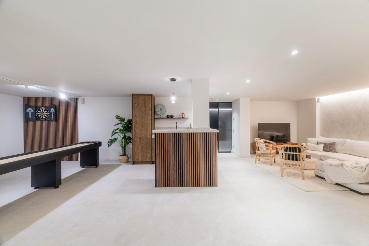 A Refined Retreat in Aloha / Las Brisas, Marbella Welcome to a beautifully renovated luxury villa located in the prestigious Aloha / Las Brisas area of Marbella. This elegant home blends timeless Mediterranean character with sleek contemporary design, and enjoys a prime location just minutes from world-class golf courses, exclusive dining, designer shopping, international schools and Marbella’s finest beaches. Set on a 815 m² plot, the house offers 475 m² of refined living space, thoughtfully distributed across three levels, with sun-drenched terraces and lush garden areas perfect for both relaxation and entertaining. The villa features six ensuite bedrooms, each with its own private bathroom, offering maximum comfort and privacy across all levels: On the ground floor, you’ll find a generous ensuite guest bedroom. The upper level hosts the master suite, complete with a private bathroom and direct access to a spacious terrace with beautiful views. Two additional ensuite bedrooms on this floor provide comfort and privacy — one with its own terrace and the other with a charming French balcony. On the lower level, two further ensuite bedrooms offer ideal accommodation for guests, family members, or staff. The open-plan main floor is tailored for modern living, featuring a bright and stylish lounge alongside a bespoke Swedish kitchen fitted with premium Miele appliances, dark oiled Oak cabinetry, and sleek Dekton countertops. The adjacent dining area is perfect for both intimate family meals and entertaining guests. Technical highlights include: Water-based underfloor heating throughout the entire house Full Daikin climate system with Airzone control in every room Integrated Sonos sound system covering the ground floor, lower level, and garden Step outside into the beautifully landscaped garden, featuring al fresco dining areas, a built-in BBQ, sunbathing zones, and a private south-facing pool that enjoys all-day sunshine – creating a tranquil oasis for year-round outdoor living. A true highlight is the rooftop terrace, offering panoramic views over the surrounding mountains and valley. This elevated lounge area is perfect for sunset cocktails, morning yoga, or simply enjoying the peace and privacy of your own rooftop haven. On the lower level, the home transforms into a full-scale entertainment and wellness retreat, complete with a custom bar and lounge, a private cinema room, and a dedicated spa area featuring a traditional hammam, Finnish sauna, plunge bath, and dual rain showers — bringing the full luxury experience into your everyday life.