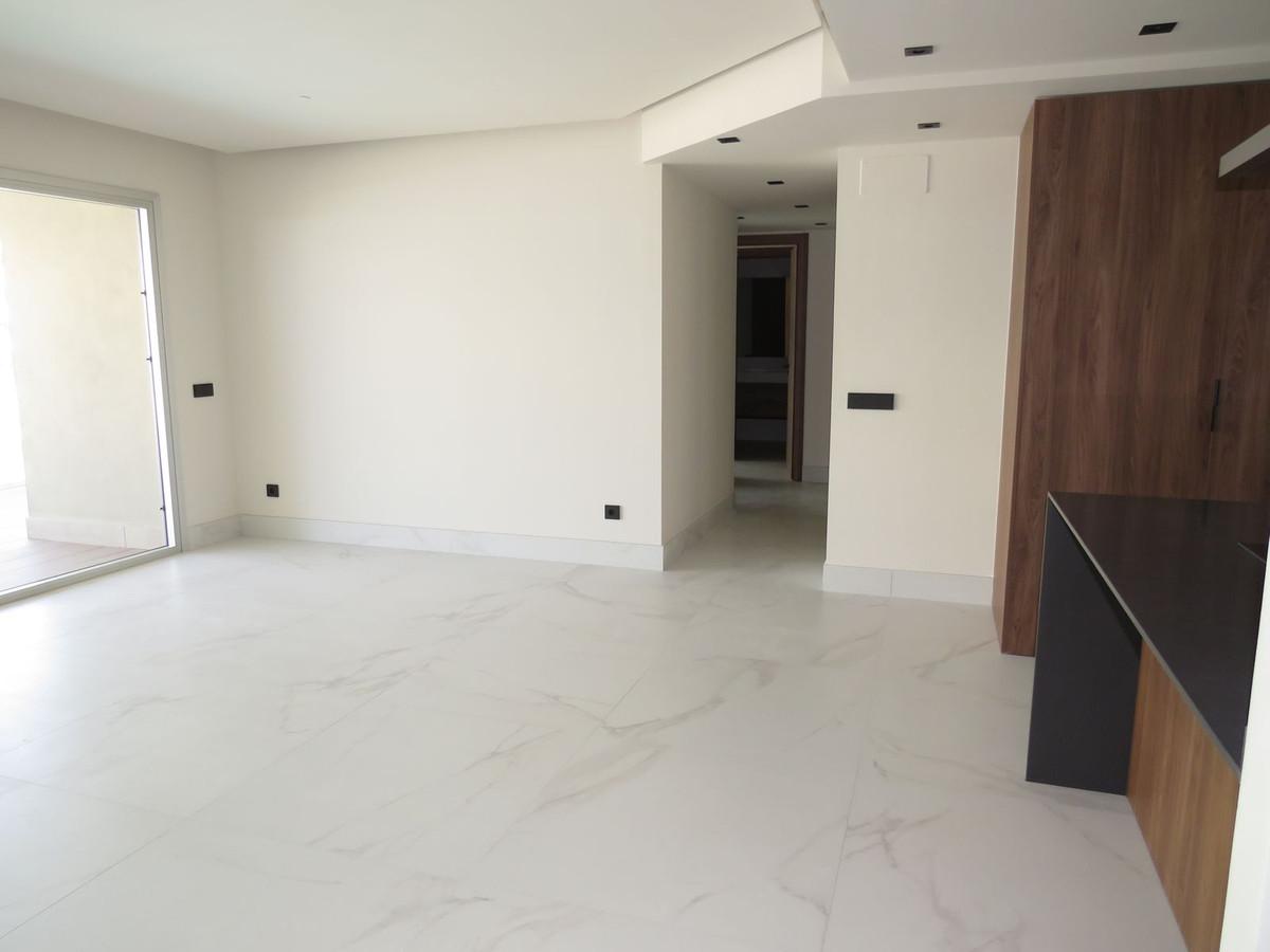 Spectacular and luxurious apartment with 3 bedrooms and 2 bathrooms, a spacious and bright living-dining room, and a covered terrace with sea views. Very close to the beach, this newly built apartment is located in a prestigious residential area in San Pedro de Alcántara, Marbella. We present this magnificent apartment with 121 m2 of built area and a 36 m2 covered terrace with partial views of the sea and the communal pool and garden. Gated complex. Underground parking. The apartment also comes with a parking space and a storage room. This brand-new, recently built apartment has all the amenities and details of a luxury apartment and it is very close to the beach. Built-in wardrobes in all bedrooms. The master bedroom has a large and a small dressing room, as well as an en-suite bathroom. Both bedrooms and the living-dining room have direct access to the enormous 36 m2 covered terrace with partial views of the sea and the residential garden. Electric blinds in all bedrooms. The kitchen is equipped with Siemens appliances and meets all the requirements of a luxury apartment. The apartment is equipped with aerothermal heating for water heating and a Siemens washing machine. Air conditioning is hot/cold. Don't miss this opportunity to move into this magnificent luxury apartment very close to the beach in San Pedro de Alcántara. Close to international and national schools. Near shops and within walking distance of all parts of San Pedro de Alcántara. Middle Floor Apartment, San Pedro de Alcántara, Costa del Sol. 3 Bedrooms, 2 Bathrooms, Built 121 m², Terrace 36 m². Setting : Town, Beachside, Close To Shops, Close To Sea, Close To Schools, Urbanisation. Orientation : West Condition : Excellent, New Construction. Pool : Communal. Climate Control : Air Conditioning. Views : Sea, Panoramic, Garden, Pool. Features : Covered Terrace, Lift, Fitted Wardrobes, Near Transport, Private Terrace, Storage Room, Double Glazing. Furniture : Not Furnished. Kitchen : Fully Fitted. Garden : Communal. Security : Gated Complex, Electric Blinds, Entry Phone. Parking : Underground. Utilities : Solar water heating. Category : Investment, Luxury.
