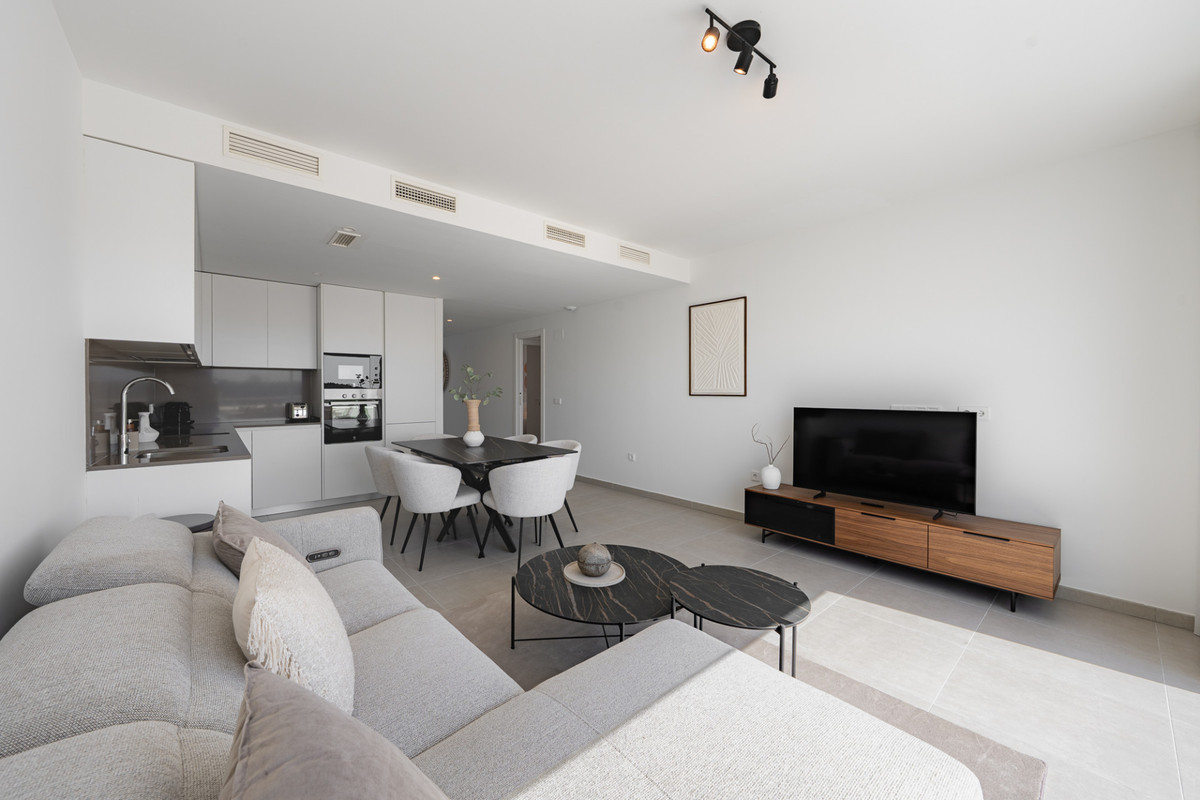 Setting: Close To Shops, Close To Sea, Close To Town, Close To Schools Orientation: South West Condition: Excellent, New Construction Pool: Communal, Indoor Views: Sea, Mountain, Panoramic, Pool Features: Lift, Private Terrace, Solarium, Gym, Double Glazing Furniture: Fully Furnished Garden: Communal Security: Gated Complex Parking: Private Category: Luxury