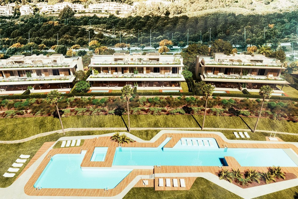 PRE LAUNCH - PHASE 1 3 bed, 3.5 bath garden apartments are 140 m2 built plus 66 m2 terrace plus 123 m2 garden. From 1.100.000 euros 4 bed, 3.5 bath garden apartments are 214 m2 plus 80 m2 terrace off living room and 280 m2 garden. From 1.300.000 euros Ready for occupation Q3 2025 - Prices excl. 10% VAT Set frontline Santa Clara Golf overlooking the 14 fairway. A total of 104 three and four-bedroom homes will exceed your expectations and fulfil your dream of living the best of times in the finest possible location. Santa Clara Living is located in the eastern part of Marbella, just a few kilometres from the entrance to the city. Fantastic golf complexes, first-class educational and health facilities and undoubtedly the best beaches in Marbella. This privileged location gives you access to a wide variety of restaurants, beach clubs and leisure centres within a 10-minute radius. Santa Clara Living has direct access to motorways (A-7 and AP-7) that will take you to Marbella and Puerto Banús, a variety of golf courses, and the rest of the towns on the Costa del Sol. Regional airports in Málaga and Gibraltar offer quick and easy connections to destinations worldwide. Enjoy a vibrant residential area full of opportunities. This perfectly positioned complex is designed to offer a sense of relaxation in an open space. Properties offer a choice of views; you can enjoy the long summer evenings in ground-floor homes with large terraces and spectacular gardens or spectacular penthouse apartments that offer breathtaking panoramic views across the golf course and the surrounding area. Contemporary design and high quality in a gated frontline golf development with beautifully landscaped gardens incorporating century-old pine trees and providing large outdoor spaces for family enjoyment with the highest level of privacy possible. The modern and stylish sports and leisure facilities at the heart of Santa Clara Homes will undoubtedly occupy a large part of your time. But it''''''''s not all about nurturing your body, we know you are looking for a place to escape from the hustle and bustle of everyday life Santa Clara Living has sought to bring the open feel of the natural surroundings into the design of each home. Exceptionally spacious combined living spaces enhance the sense of integration and harmony with the local environment. Large-format porcelain tiled floors, combined living room and kitchen areas, and picture windows in both bedrooms and living room take advantage of natural light at all times of the day, Spectacular terraces are perfect for outdoor meals and relaxation in the best of company. Kitchens have been designed as an integral part of the living area to create a bright and spacious living space for all-day use. Specifications reflect the quality you would expect from such a high-quality project, with quartz countertops, fitted appliances and integrated LED lights to provide warmth and sophistication. In the bathrooms, the elegance of large-format porcelain tiles reflects our overall commitment to quality and design. PAYMENT TERMS: Reservation Deposit of €6.000* 20% of Selling Price + VAT on Signing Private Purchase Contract 10% of Selling Price + VAT instalment during construction 70% of Selling Price + VAT on completion