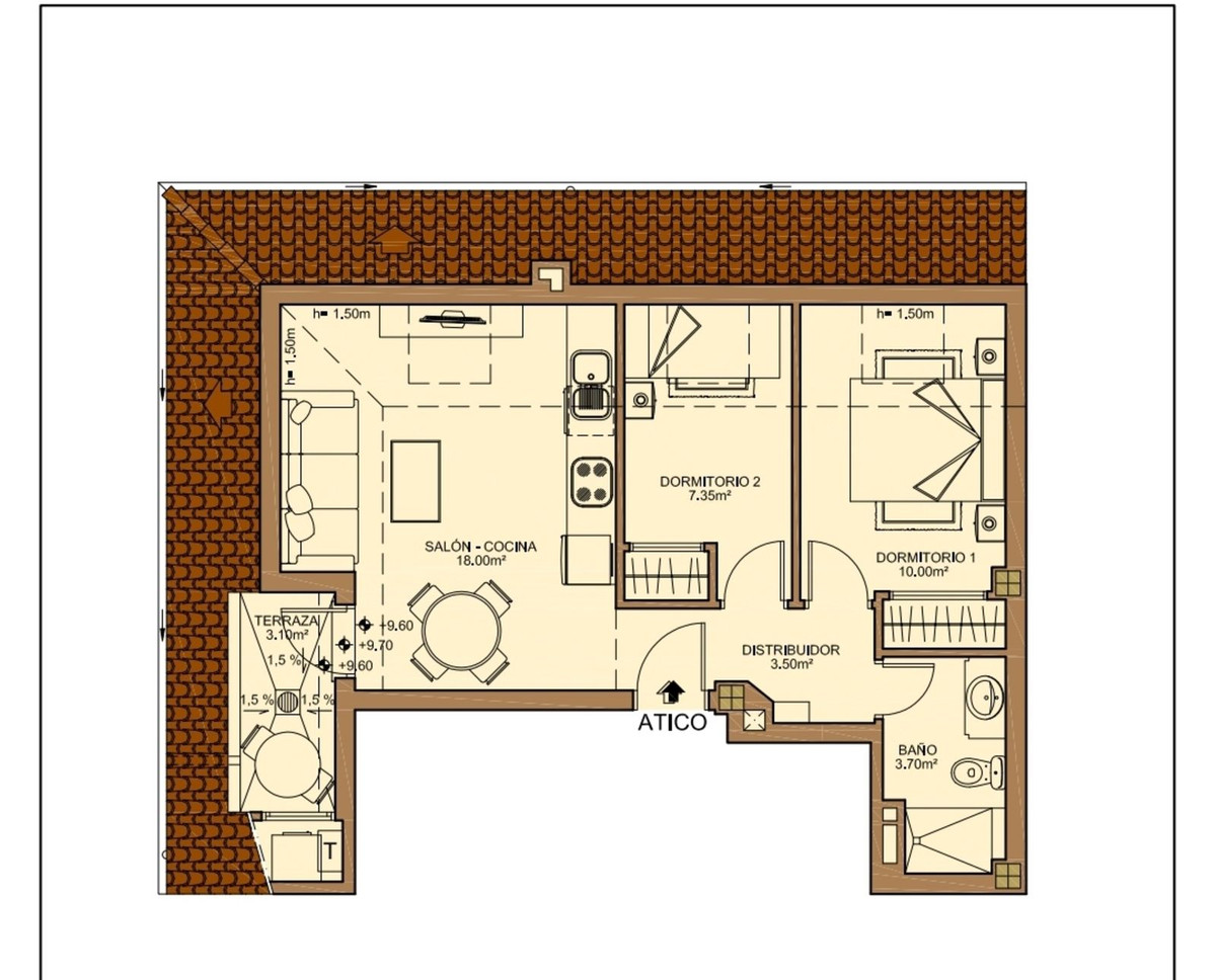Penthouse in the heart of Los Boliches, just a few meters from the beach and the commuter train station. Construction imminent. Surrounded by shops and the best beaches in Fuengirola. Ideal for profitability given its location and type. 2-bedroom, 1-bathroom apartment with air conditioning, aerothermal heating, and an elevator. Do not hesitate to contact us and we will provide you with more information. Fuengirola, the capital of the Costa del Sol, is less than twenty kilometers from Malaga Airport and only twenty-five kilometers from both Malaga city center and Marbella.