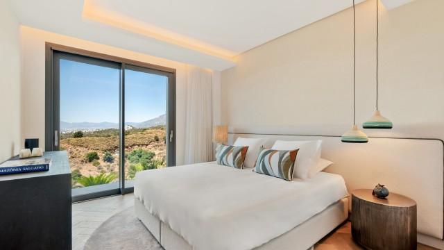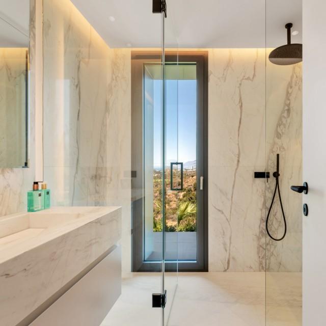 Brand New Contemporary Villa for sale Set on a south-facing plot of over 1,000 m², this newly built villa delivers sweeping views of the Mediterranean Sea and surrounding mountains. Constructed by local established builders, the property combines sharp modern architecture with natural textures and floor-to-ceiling glass for seamless indoor-outdoor living. The main level features an open-plan layout where the living, dining and kitchen areas flow to expansive terraces through full-width sliding doors. A private infinity pool, covered dining lounge and landscaped gardens create a true extension of the interior spaces. A private driveway with covered carport provides convenient access and secure parking. Inside, the villa is finished to a high standard with elegant stone surfaces, warm wood cabinetry and discreet lighting. Generous bedrooms include stunning ensuite bathrooms, while the master suite offers direct terrace access and panoramic sea views. With its modern design, private setting and exceptional vistas, this property is a standout contemporary home in Marbella East.