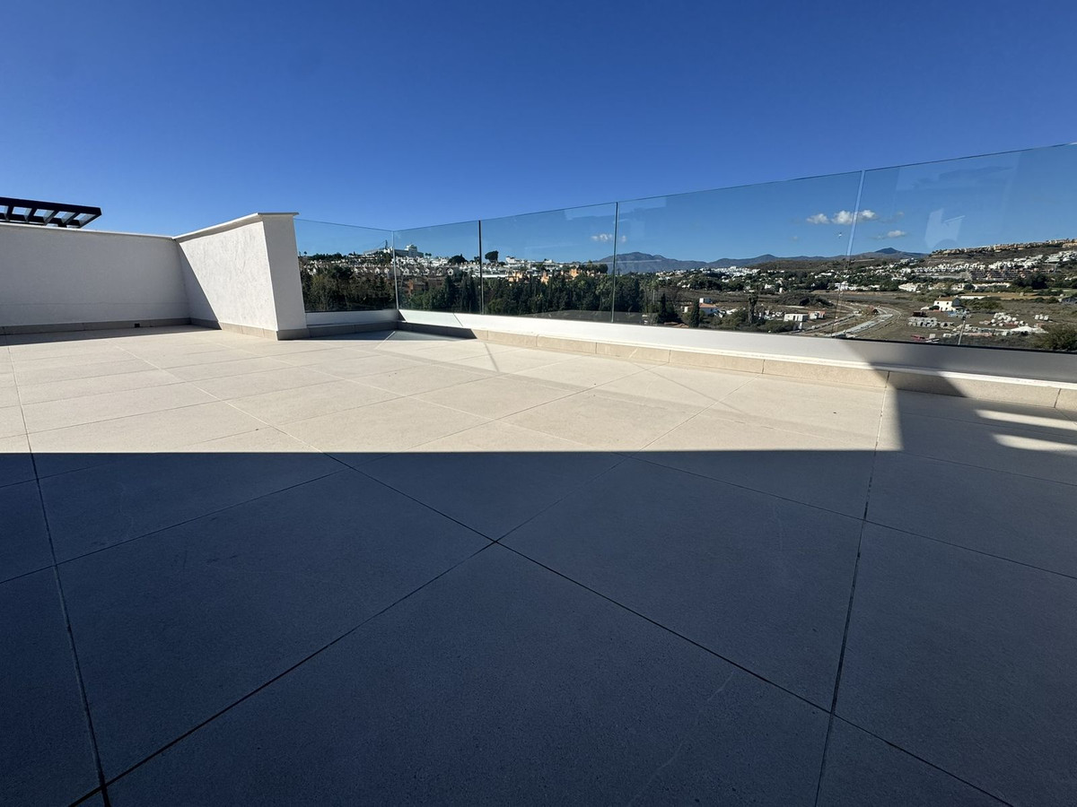 Brand-new contemporary 4-bedroom semi-detached townhouse located in the exclusive Atalaya Golf area, perfectly positioned between Marbella and Estepona. This never-before-lived-in home features a private driveway with parking, a stunning open-plan living space with a fully equipped modern kitchen, three bedrooms and two bathrooms on the main levels, plus an additional en-suite bedroom in the basement. The bright and spacious living room opens onto a west-facing terrace and private garden, ideal for enjoying the afternoon sun. A spectacular rooftop solarium offers breathtaking mountain views, creating the perfect setting for entertaining or relaxing. Within walking distance to local amenities, this property represents a unique opportunity to own a stylish modern home in one of the Costa del Sol’s most sought-after locations.