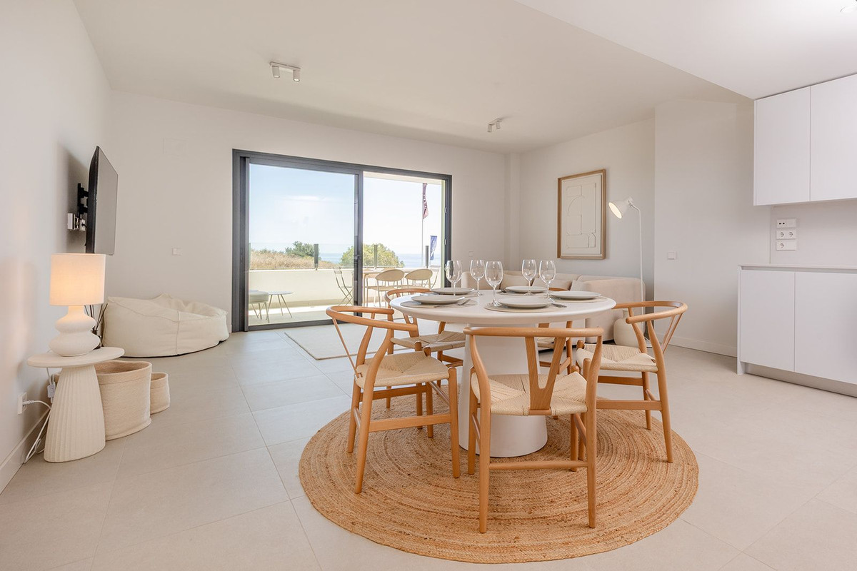 Stunning 3-Bedroom Apartment with Sea and Golf Views in Ipanema, Calanova Golf – Mijas Discover luxury living in this beautifully designed 3-bedroom, 2-bathroom apartment located in the sought-after Ipanema development at Calanova Golf, Mijas. This modern home offers panoramic views of the Mediterranean Sea and the lush fairways of Calanova Golf Course, providing the perfect blend of tranquility and elegance. The apartment features a spacious open-plan living and dining area that opens onto a generous terrace—ideal for enjoying al fresco dining while taking in the spectacular scenery. The sleek, fully equipped kitchen includes high-end appliances and quality finishes throughout. The master bedroom boasts an en-suite bathroom and direct access to the terrace with sea views. Two additional bedrooms and a second bathroom make this home perfect for families or as a high-end rental investment. Key features include: – South-facing orientation with stunning natural light – Large private terrace with sea and golf views – Air conditioning (hot and cold) – Access to two designer swimming pools, a gym, and beautifully landscaped gardens – Gated community with high security standards Located just minutes from the beach, La Cala de Mijas, and all local amenities, this apartment offers an exceptional lifestyle in one of the Costa del Sol’s most up-and-coming areas. Don’t miss the opportunity to own a piece of paradise in Ipanema!