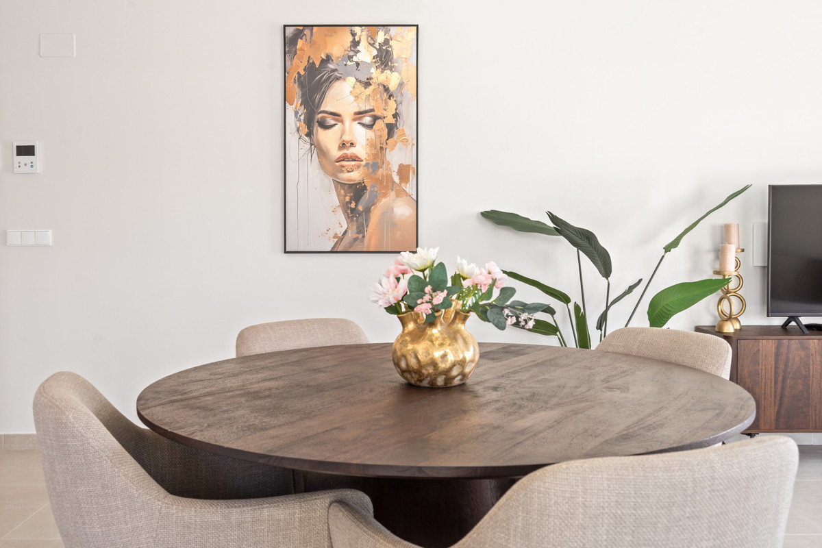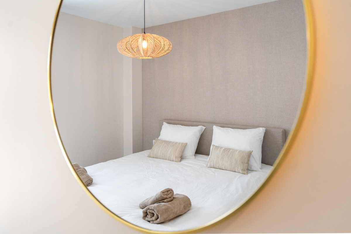 Welcome to this beautifully appointed 2-bedroom, 2-bathroom penthouse in the prestigious residential complex of Oceana Gardens, ideally located in Cancelada – right at the heart of the sought-after New Golden Mile between Marbella and Estepona. This contemporary penthouse is distributed over a single floor and offers a seamless indoor-outdoor living experience. The highlight is undoubtedly the expansive 76m² private terrace, which enjoys spectacular open views of the Mediterranean Sea and the surrounding mountain ranges – the perfect setting for relaxing, entertaining, or enjoying the region’s stunning sunsets. The interior is spacious and light-filled, with a modern open-plan living and dining area that connects effortlessly with the outdoor space. The fully furnished property is delivered turnkey, ready to move in and enjoy immediately. The kitchen is fully equipped with high-end appliances, and both bedrooms feature built-in wardrobes and elegant bathrooms. Additional features include underground parking and a private storage room, ensuring practicality and security. Residents of Oceana Gardens benefit from a beautiful communal swimming pool and a well-equipped gym within the complex. Furthermore, ownership includes access to a nearby exclusive sports club, offering premium facilities such as a restaurant, indoor heated swimming pool, fully equipped fitness center, luxurious spa, and wellness area – ideal for a balanced, healthy lifestyle. The location is unbeatable: just 2.5 km from the sandy beaches of the Costa del Sol, where you'll find a variety of charming chiringuitos (beach bars) and stylish beach clubs. Both Marbella and Estepona are only a 10-minute drive away, making this the perfect base for enjoying the best of the Costa del Sol – whether you’re looking for a second home, investment opportunity, or permanent residence.