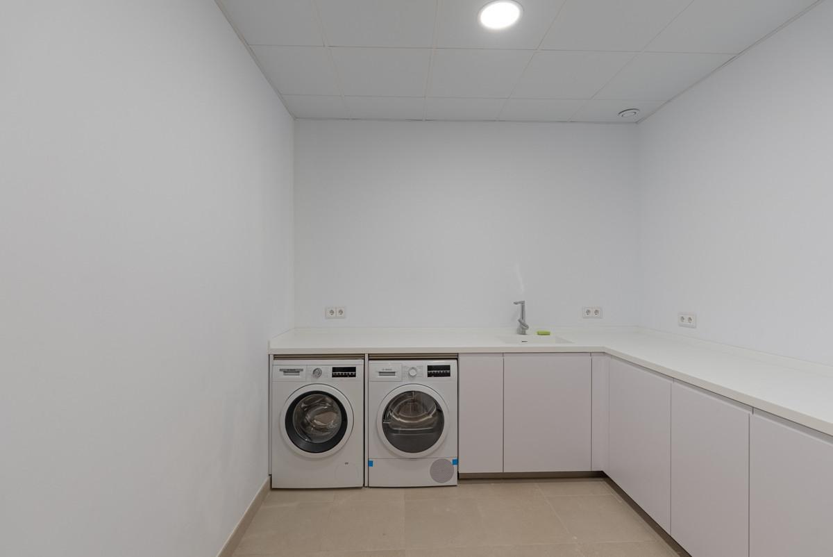 Situated within the prestigious gated community of La Fuente, this newly built contemporary residence epitomizes modern Marbella living. Designed by award-winning architects and crafted to the highest standards, it offers sophistication, comfort, and cutting-edge technology in one of the most exclusive locations on the Golden Mile — just minutes from Marbella centre, the beach, and the iconic Puente Romano Resort. Set on a 925 m² plot with 593 m² built, this south-facing property enjoys natural light throughout the day and boasts elegant architecture surrounded by manicured gardens and a private pool. The main floor features an open-plan layout with an expansive living and dining area and a state-of-the-art designer kitchen equipped with premium appliances. Floor-to-ceiling windows seamlessly connect the interior to the outdoor terrace and pool, creating a perfect flow between indoor and outdoor living. The home includes four en-suite bedrooms, each designed for comfort and privacy. The master suite offers a walk-in dressing room, a luxurious bathroom with a Japanese-style toilet, and access to a private terrace. The lower level is dedicated to leisure and wellness, featuring a climate-controlled wine cellar, fitness area, sauna, hammam, and pre-installed home cinema, along with laundry and storage rooms. The garage accommodates several cars and includes an electric vehicle charging station. The property is offered unfurnished, allowing the new owner to personalize every space to match their own taste and lifestyle — a unique opportunity to create a truly bespoke interior within an already exceptional home. On the rooftop, a stunning sky lounge enjoys panoramic sea views — the perfect setting to experience Marbella’s golden sunsets. Equipped with solar panels, smart home automation, perimeter alarm, motion sensors, and a heated pool with lighting and counter-current system, the home combines efficiency, security, and ultimate comfort. Part of an exclusive community of only fifteen villas, it guarantees privacy and tranquility while being close to international schools, fine dining, and Marbella’s best amenities. An exceptional opportunity to own a brand-new modern home on Marbella’s Golden Mile — elegant, secure, and ready to be tailored to your vision of luxury living.