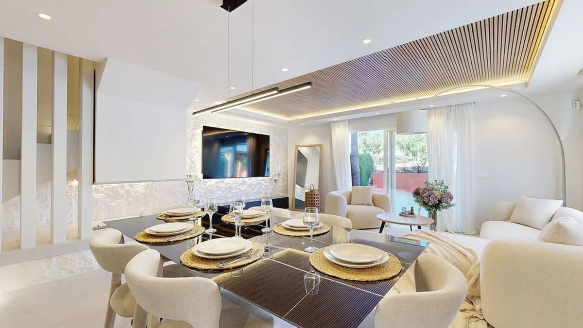 Exclusive Newly Renovated Semi-Detached Villa in Nueva Atalaya – Estepona Discover this spectacular modern-style home located in the peaceful Monte Biarritz urbanization, just minutes from Puerto Banús, San Pedro de Alcántara, and the best beaches of the Costa del Sol. Built in 2025, this property combines elegance, comfort, and quality in every detail. With 204 m² of built area on a 250 m² private plot, the house is spread over three floors and features 3 spacious bedrooms, 3 bathrooms, and a bright living room with direct access to the garden and the communal swimming pool. Its east–west orientation ensures natural light throughout the day, creating warm and welcoming spaces. Among its many highlights: Fully equipped open-plan kitchen Terrace and balcony with open views Hot and cold air conditioning Built-in wardrobes and high-quality finishes Private garage for 2 cars Located in one of Estepona’s most sought-after areas, this home offers excellent connections to golf courses, restaurants, and all essential services — all within a safe and exclusive environment. A unique opportunity to enjoy the Mediterranean lifestyle with all modern comforts.