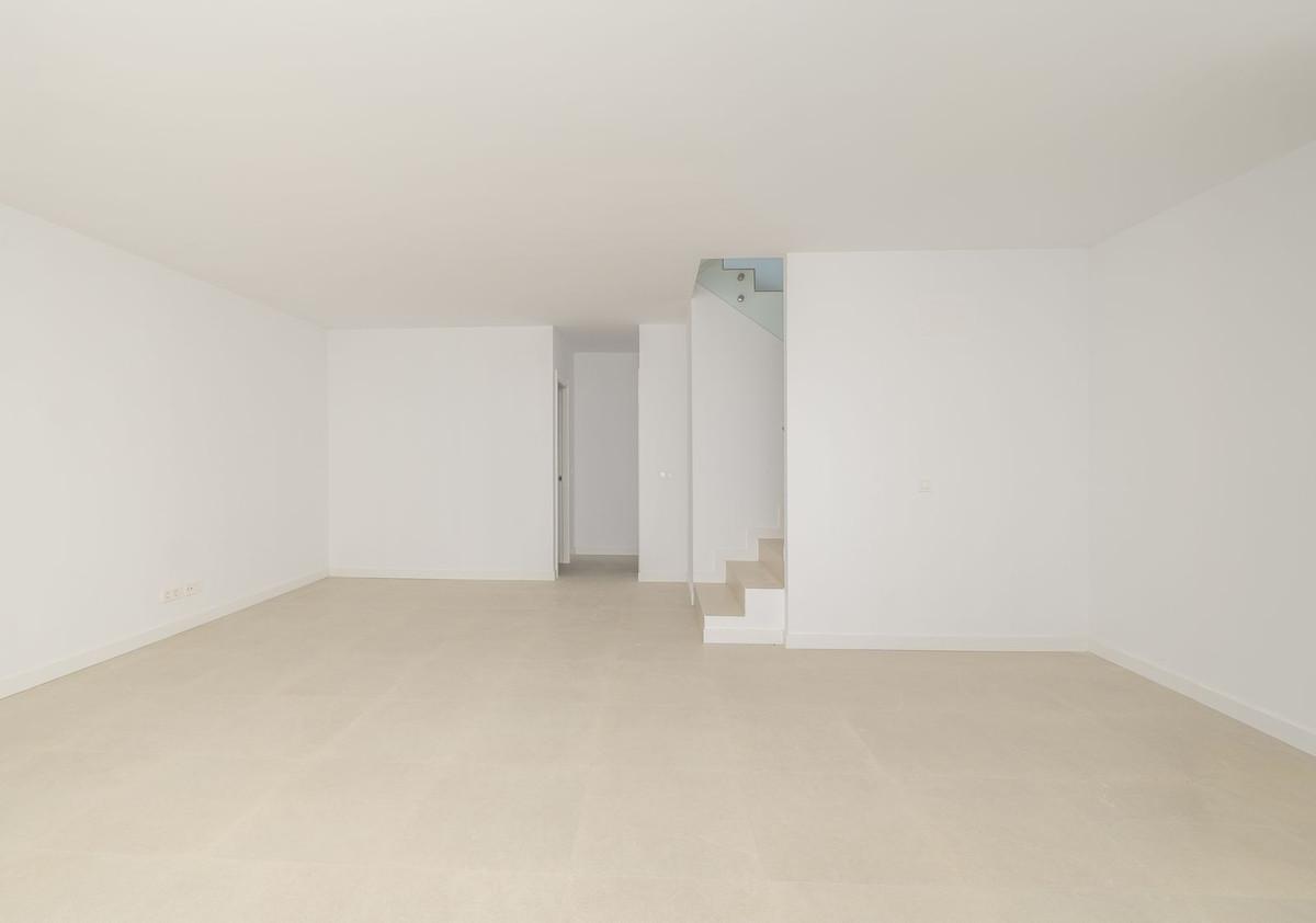 Welcome to this stunning detached villa, located on the New Golden Mile within the exclusive Serene Atalaya development in Estepona (Málaga), one of the most prestigious and sought-after residential areas on the Costa del Sol. This prime location is renowned for its exclusivity, tranquillity and high urban quality, where contemporary architecture blends seamlessly with a carefully integrated natural environment. The property offers 174 m² of built area set on a 306 m² private plot and is distributed over three levels: basement, ground floor and first floor. Thanks to its southwest orientation, the villa enjoys excellent natural light throughout the day, pleasant open views and beautiful sunsets. On the ground floor, the villa features an open-plan living and dining area with an integrated kitchen, a pantry, guest toilet, covered and uncovered terraces, and direct access to the private garden, creating a perfect indoor-outdoor living experience. The first floor, dedicated to the sleeping area, offers a master bedroom en suite with a walk-in dressing room and private bathroom, as well as two additional bedrooms sharing one bathroom. The basement level, with an English patio providing abundant natural light, is a spacious and highly versatile area. It offers multiple possibilities, such as a large en-suite bedroom (fourth bedroom), an additional bedroom for guests or staff (fifth bedroom), gym, cinema room, lounge, wine cellar or games room, and also includes a full bathroom and a laundry area. Outdoor spaces comprise 27 m² of terraces, a 124 m² private garden, and private parking for up to three vehicles. There is also the option to build a custom-designed private swimming pool at an additional cost. The villa is ideally situated next to Atalaya Golf and El Campanario Golf, making it perfect for golf enthusiasts and those who enjoy an active outdoor lifestyle. The area also stands out for its proximity to the beach, renowned beach clubs, fine dining restaurants and luxury hotels, with excellent connections to Estepona, Marbella and Puerto Banús. The gated community offers carefully designed communal areas, including an adult swimming pool, children’s pool, landscaped gardens and a solarium, ideal for relaxation and outdoor living. It is also particularly attractive for families due to its proximity to prestigious international schools, as well as a wide range of nearby services and supermarkets. Built to high quality standards, the villa provides outstanding comfort and energy efficiency. Features include thermal and acoustic insulation, aluminium exterior carpentry with thermal break and double glazing, an aerothermal system for hot water and climate control, underfloor heating, air conditioning, a high-spec electrical installation and an efficient ventilation system. Bathrooms are finished with premium materials, while the interior carpentry includes a reinforced entrance door, white lacquered doors and fitted wardrobes. An ideal property for both permanent living or as a second home, offering a secure, private and green environment in one of the most desirable locations on the Mediterranean coast.