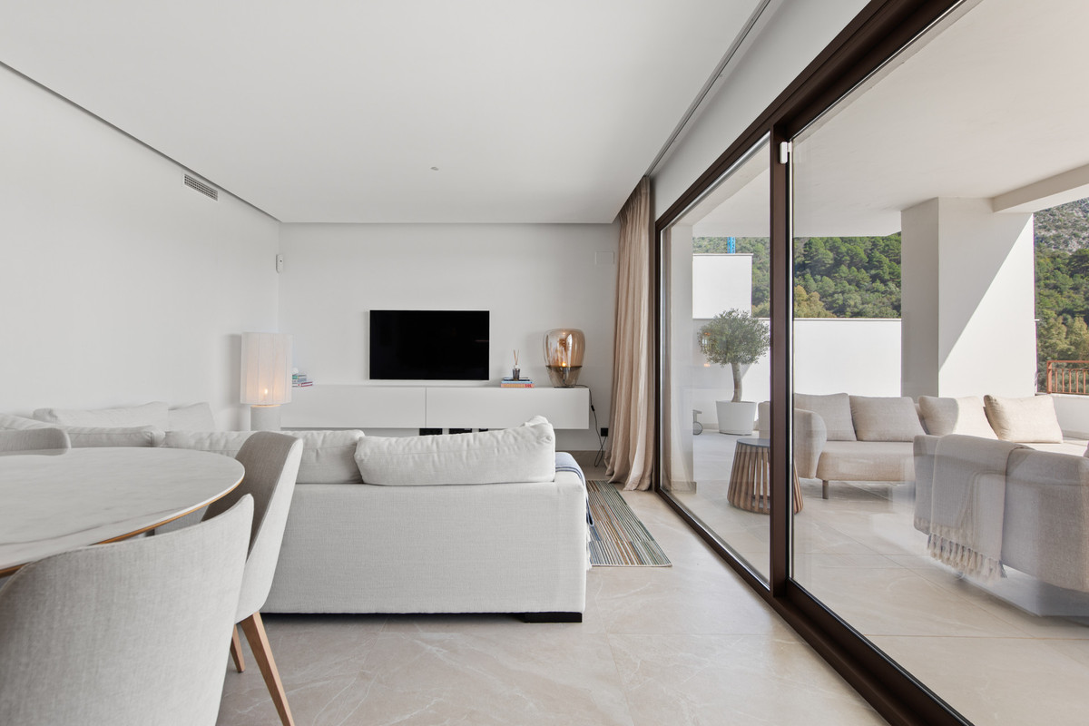 Set in a privileged position above the picturesque Istán reservoir, this exceptional three-bedroom, two-bathroom apartment offers a refined lifestyle where luxury, nature and breathtaking views come together in perfect harmony. Surrounded by tranquility and greenery, yet just minutes from Marbella’s vibrant lifestyle, this property is truly one of a kind. The generous terraces are beautifully designed and from here, the views stretch across the landscape and the Mediterranean Sea. The spacious outdoor areas provide the perfect setting for relaxing, dining and entertaining while enjoying the peaceful natural surroundings. The open-plan living and dining areas flow seamlessly onto the terrace, enhancing the indoor-outdoor lifestyle that defines living on the Costa del Sol. The three well-appointed bedrooms offer comfort and privacy, while the two modern bathrooms are finished to a high standard. The property also includes a garage and a separate storage room, ensuring practicality without compromising on luxury. Despite its serene location, the glamorous marina, designer boutiques and fine dining of Puerto Banús are just a twelve-minute drive away. An impressive apartment for the discerning buyer seeking privacy, panoramic views and refined living on the Costa del Sol.
