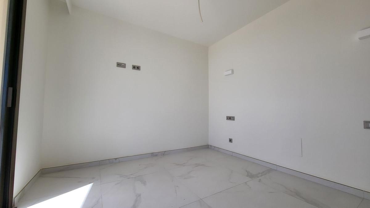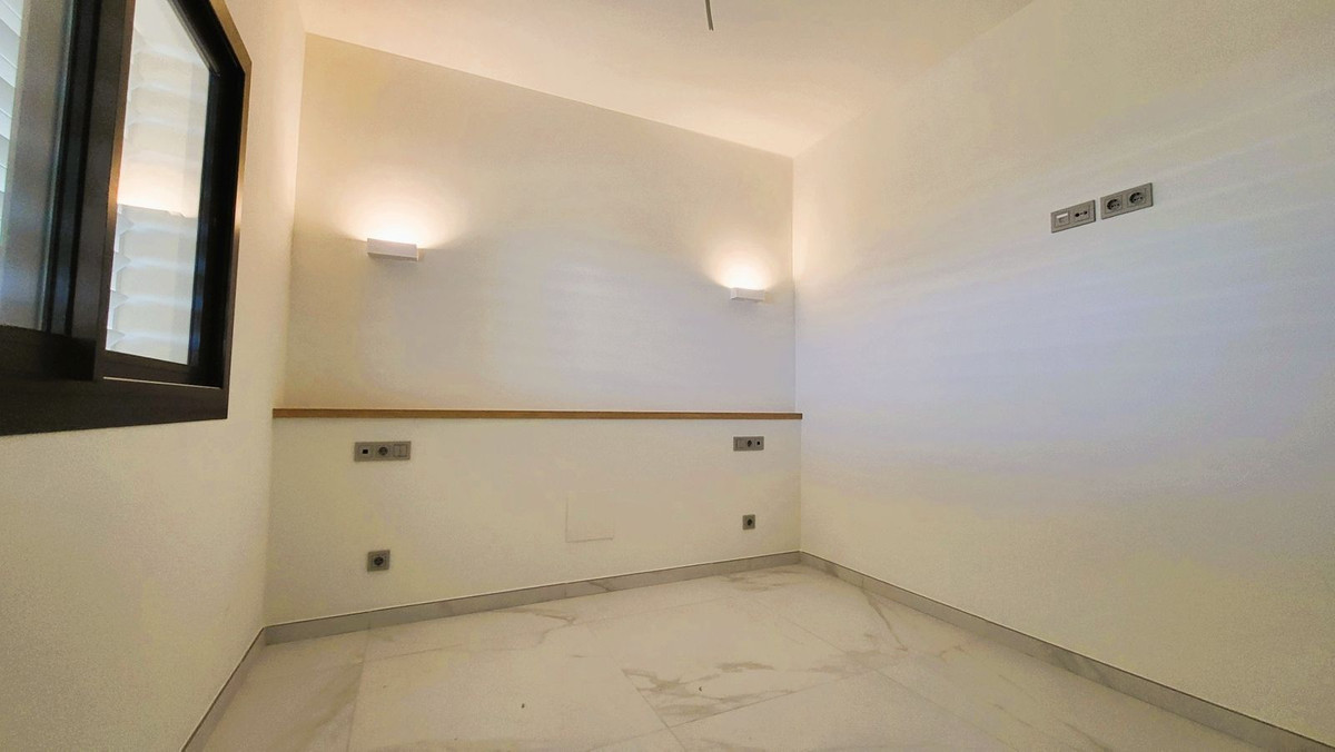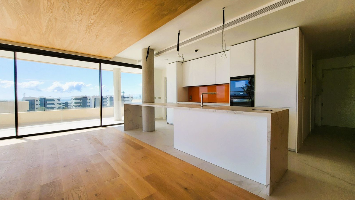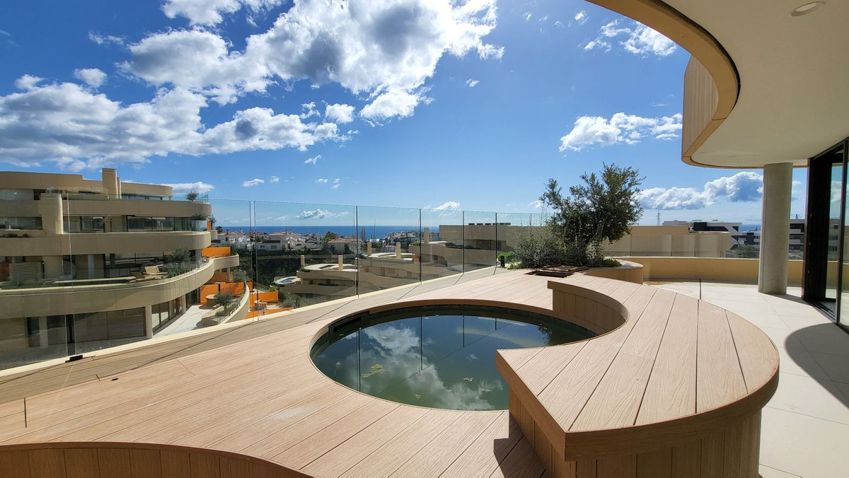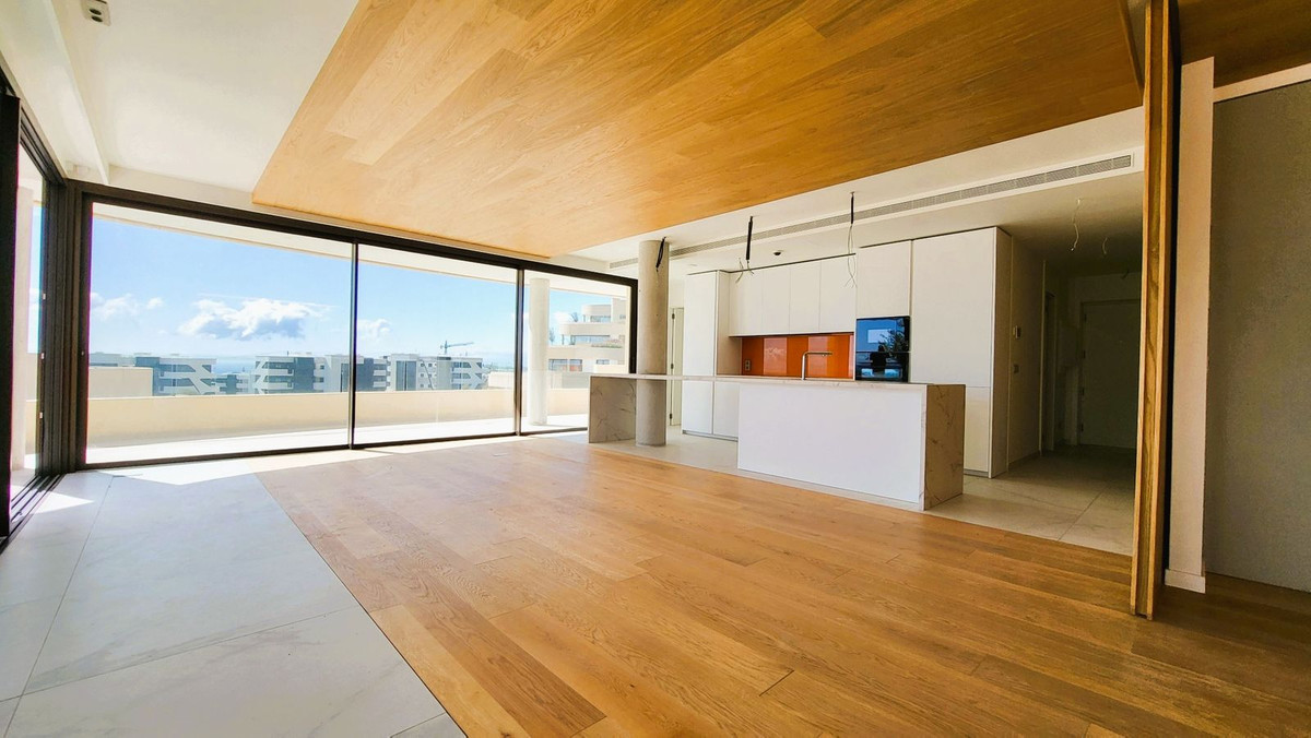 Brand new luxury corner penthouse, located in the exclusive urbanization of Reserva del Higuerón, with 3 bedrooms, 2 bathrooms, spacious living-dining room, open plan kitchen fully furnished and equipped with electricial appliances from Bosch, laundry area with washing machine/dryer, large terrace of 92m2 with beautiful sea and garden views. Main bedroom with ensuite bathroom and walk-in closet. This apartment is distinguished by the ingenious movable wall that connects the master bedroom-suite to the living room. This elongated sliding door is designed to duplicate the entrance of natural light and enjoying much better views. This easy interaction between the living spaces creates a flexible open area that is designed for you to enjoy the climate and lifestyle of Southern Spain. This clever design not only maximises the natural light of the Costa del Sol in both rooms, but also allows you to admire the splendid views from every corner of your home. Air conditioning hot and cold, video intercom, domotic system, pre-installation alarm system, water filter system, under floor heating in both bedrooms and bathrooms. Includes two parking spaces (one with electric car charger) and one storage room. Extensive communal areas including Mediterranean gardens, 3 Swimming pools for adults and children and outdoor sauna.