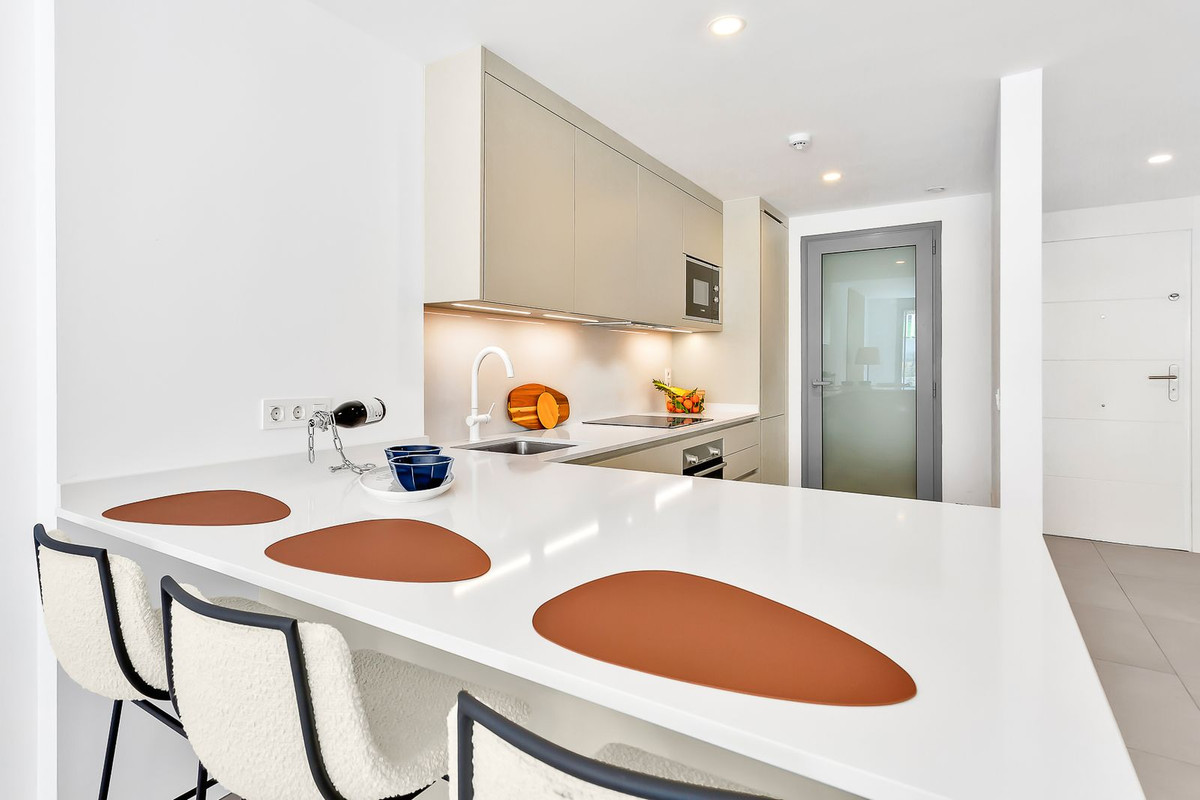 Setting: Beachside, Close To Golf, Close To Shops, Close To Sea, Close To Schools, Urbanisation Orientation: West Condition: Excellent Pool: Communal Climate Control: Air Conditioning, Hot A/C, Cold A/C, Central Heating, U/F Heating Views: Garden, Courtyard Features: Covered Terrace, Fitted Wardrobes, Near Transport, Private Terrace, WiFi, Gym, Storage Room, Utility Room, Ensuite Bathroom, Double Glazing Furniture: Fully Furnished Kitchen: Fully Fitted Garden: Communal, Private, Landscaped, Easy Maintenance Security: Gated Complex, Electric Blinds, Entry Phone Parking: Underground, Garage, Street, Private Utilities: Electricity Category: Holiday Homes, Investment, Resale, Contemporary