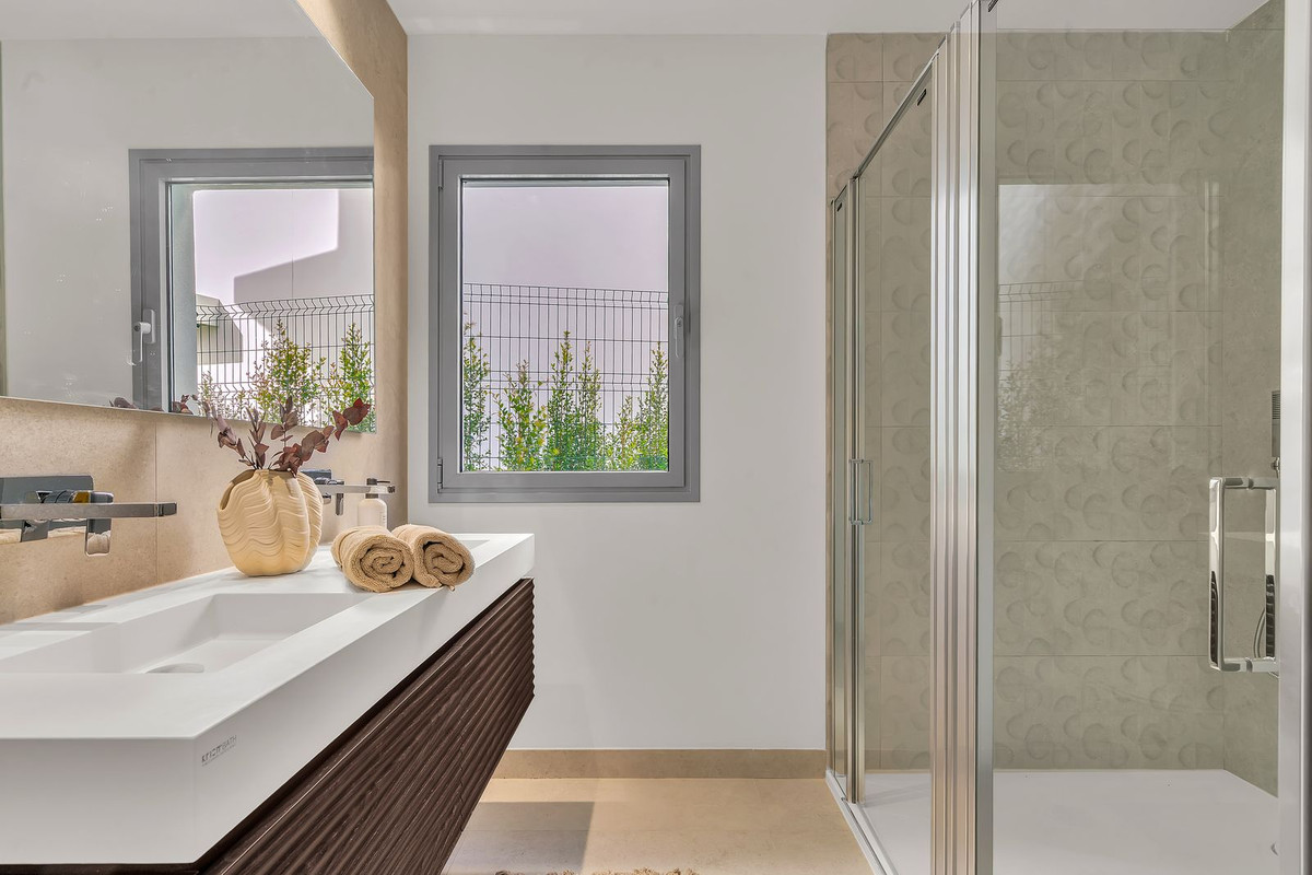 A rare 4-bedroom elevated ground-floor home in Santa Clara Homes, offering villa-style living with generous private outdoor spaces in a secure luxury community in Marbella East. With a total built area of 239 m² and over 250 m² of private outdoor space, this exceptional property combines the comfort and convenience of an apartment with the privacy and space of a standalone villa. Thanks to its south-facing orientation, the home enjoys abundant natural light throughout the day. The spacious open-plan living and dining area flows effortlessly onto a large covered porch, private garden, and private swimming pool, creating an ideal setting for outdoor living, entertaining, and relaxation all year round. The property features four generous bedrooms and four bathrooms, offering flexibility for families, guests, or a home office. A key highlight is the large basement of approximately 64 m², providing excellent potential for a cinema room, gym, wine cellar, additional bedrooms, or extensive storage. Additional features include: Underfloor heating throughout Gated luxury community SPA, gym, and several communal swimming pools Beautifully landscaped gardens Two private parking spaces in the underground garage One private storage room Key ready – move in immediately This is a rare opportunity to acquire a south-facing home with private pool and garden in one of the most desirable residential areas of Marbella, ideal as a primary residence, second home, or high-end investment.