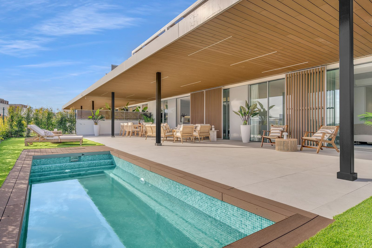 Setting: Close To Golf, Close To Shops, Close To Sea, Close To Town, Urbanisation Orientation: South Condition: Excellent, New Construction Pool: Communal, Private, Indoor, Heated, Children`s Pool Climate Control: Air Conditioning, Hot A/C, Cold A/C, U/F Heating Views: Garden, Pool Features: Covered Terrace, Lift, Fitted Wardrobes, Private Terrace, Gym, Sauna, Storage Room, Utility Room, Ensuite Bathroom, Marble Flooring, Double Glazing, Basement Furniture: Fully Furnished Kitchen: Fully Fitted Garden: Communal, Private, Landscaped, Easy Maintenance Security: Gated Complex, Entry Phone, Safe Parking: Underground, Garage, More Than One Category: Golf, Holiday Homes, Luxury, Contemporary