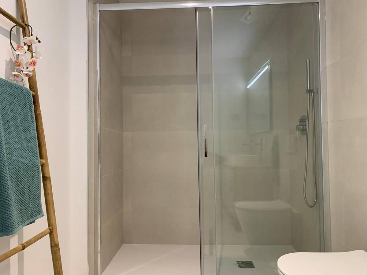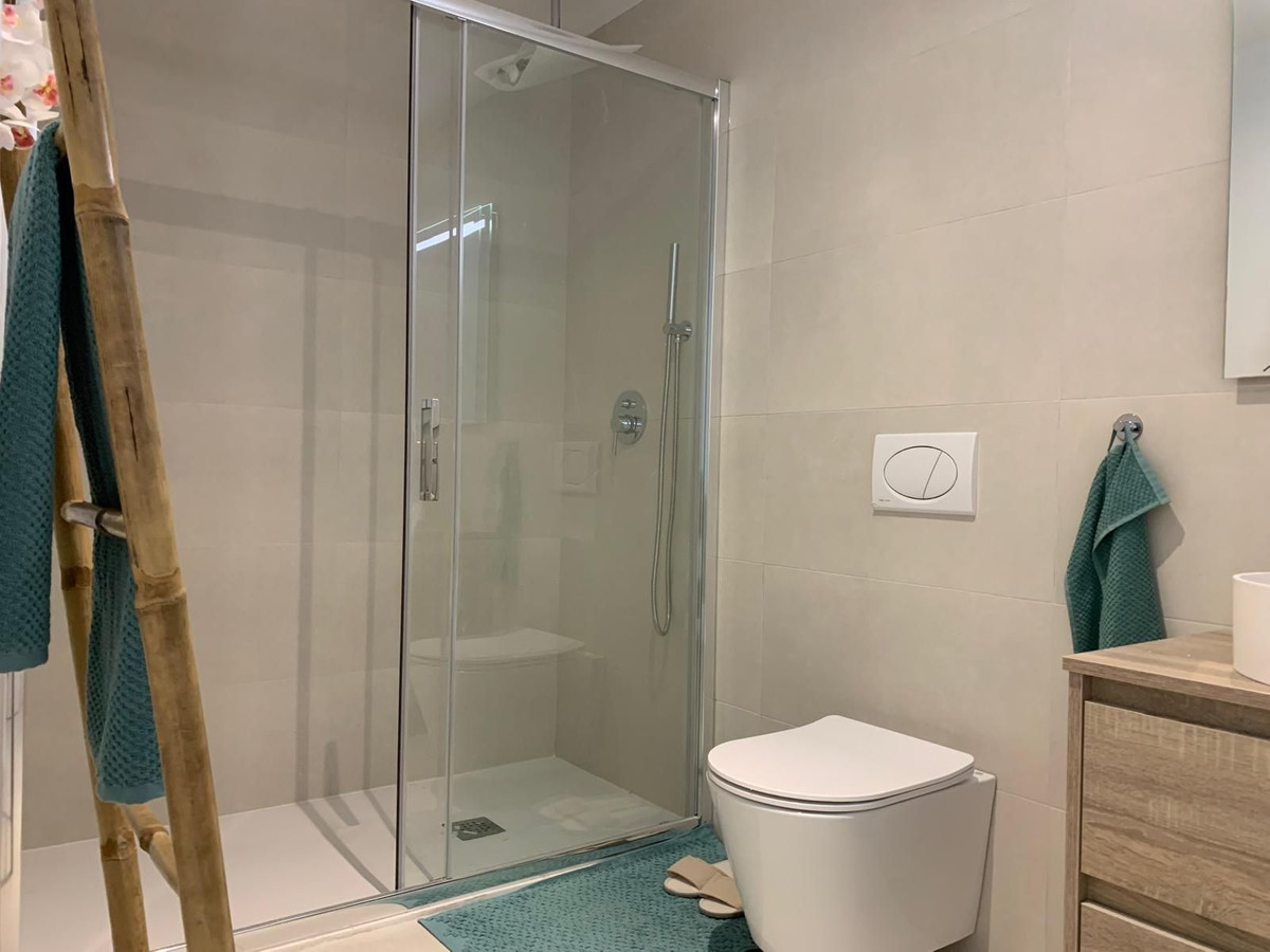 Ground Floor Apartment, Fuengirola, Costa del Sol. 2 Bedrooms, 2 Bathrooms, Built 90 m², Terrace 60 m². Orientation : South. Condition : Excellent. Pool : Communal. Climate Control : Air Conditioning, Pre Installed A/C, Hot A/C, Cold A/C. Views : Garden. Features : Lift, Fitted Wardrobes, Private Terrace, Double Glazing. Furniture : Fully Furnished. Kitchen : Fully Fitted. Garden : Private. Security : Entry Phone. Parking : Underground. Utilities : Electricity, Drinkable Water.