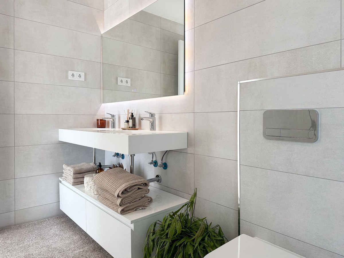 Brand new 3-bedroom apartment with sea views in La Cala de Mijas Welcome to this modern and inviting apartment in the sought-after residential complex Royal Palms in La Cala de Mijas. This stylish home offers high comfort, beautiful natural light, and access to an exceptional range of exclusive amenities. The apartment features a bright and spacious living area seamlessly connected to the open-plan kitchen, which is designed in an elegant minimalist style and fitted with integrated appliances. Large windows flood the interior with natural light, creating a warm and welcoming atmosphere throughout. The property comprises 3 well-proportioned bedrooms and 2 modern bathrooms, including an en-suite bathroom in the master bedroom. All bedrooms enjoy direct access to the lovely terrace, where you can relax and enjoy the Spanish climate together with beautiful sea views. The layout makes the property ideal as a permanent residence, holiday home, or investment opportunity on the Costa del Sol. An outstanding feature of the property is the generous 47 m² room located behind the apartment, currently with its own private entrance. This space offers exciting potential, as it can be opened up and connected to the apartment itself, making it possible to create additional bedrooms, an extra bathroom, or a versatile multi-use area depending on your needs. The apartment also benefits from two private parking spaces and an additional 16.29 m² storage room located in the garage directly behind the parking spaces. Residents of Royal Palms enjoy access to superb communal facilities, including: - Shared swimming pool area - Fitness center - Spa with sauna and Turkish bath - Tennis courts - Padel courts - Golf simulator - Co-working area - Playground Ideally located in La Cala de Mijas, the property is close to the beach, restaurants, shops, and several popular golf courses, while also offering easy access to Marbella and Málaga Airport. A fantastic opportunity to acquire a modern home with sea views, exceptional amenities, and excellent expansion potential in one of the Costa del Sol’s most attractive areas.