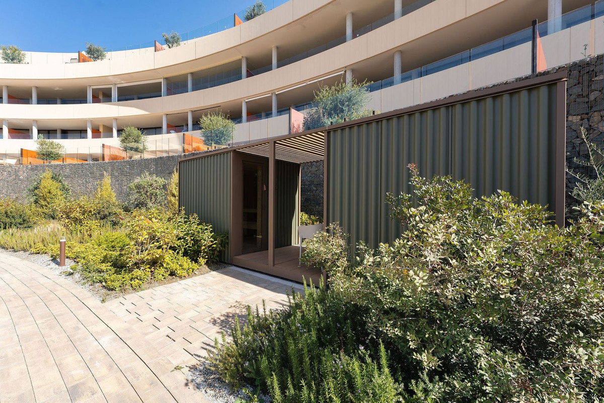 Setting: Close To Golf, Close To Port, Close To Shops, Close To Sea, Close To Town, Close To Schools Orientation: South Condition: Excellent, New Construction Pool: Communal Climate Control: Air Conditioning Views: Sea, Pool Features: Covered Terrace, Lift, Fitted Wardrobes, Near Transport, Sauna, Storage Room, Ensuite Bathroom Furniture: Fully Furnished Kitchen: Fully Fitted Garden: Communal Security: Gated Complex, 24 Hour Security Parking: Garage